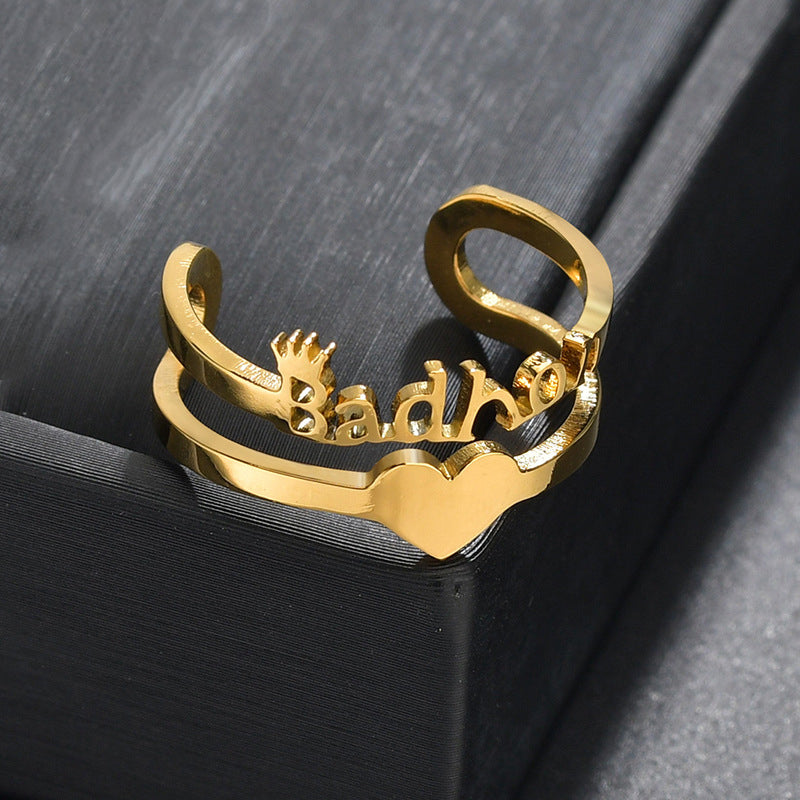 This is an adjustable ring with a personalized shape and a cute heart shape. Turn meaningful names into exquisite jewelry, and send your best wishes.