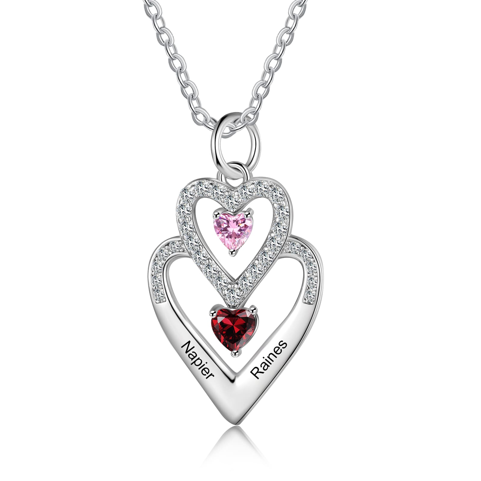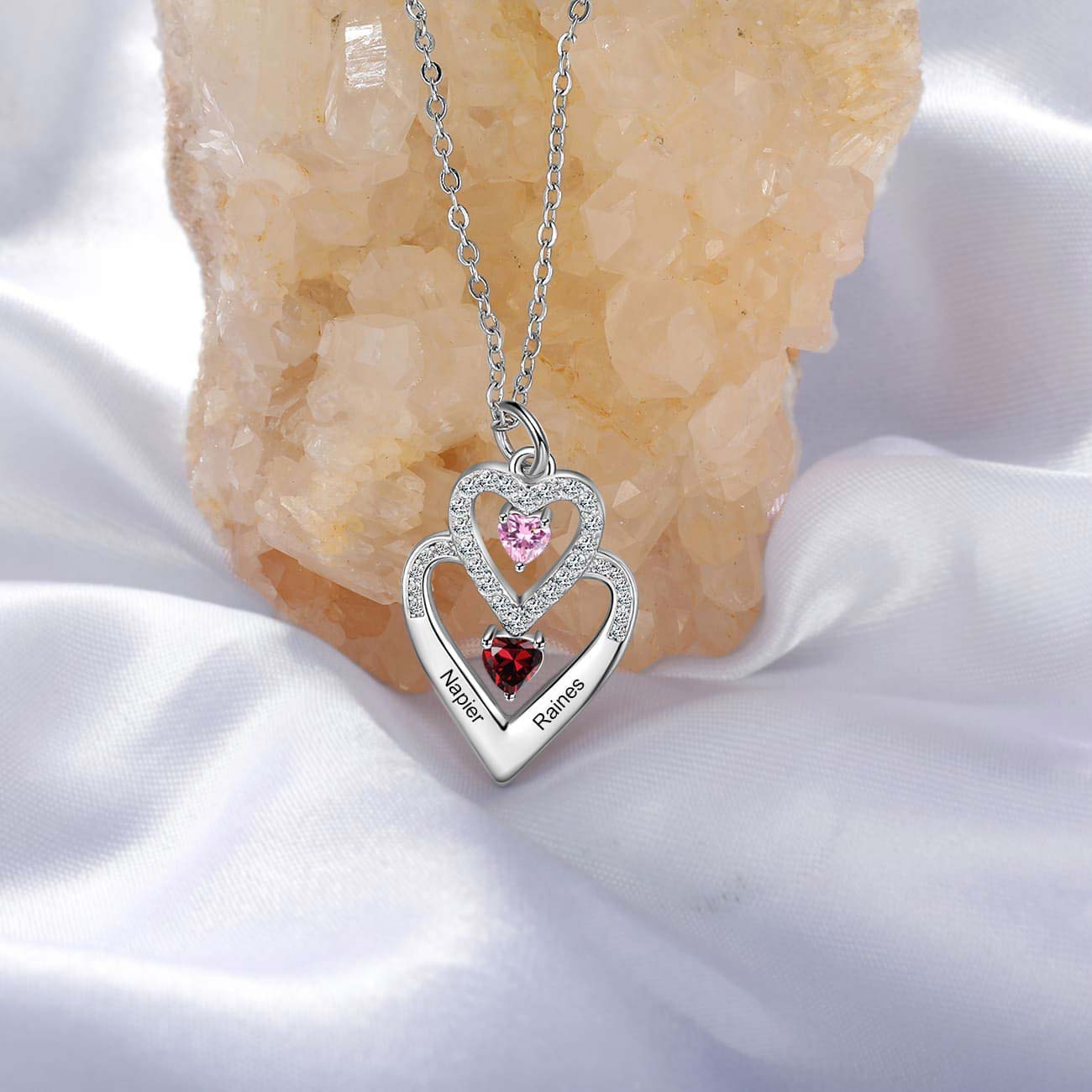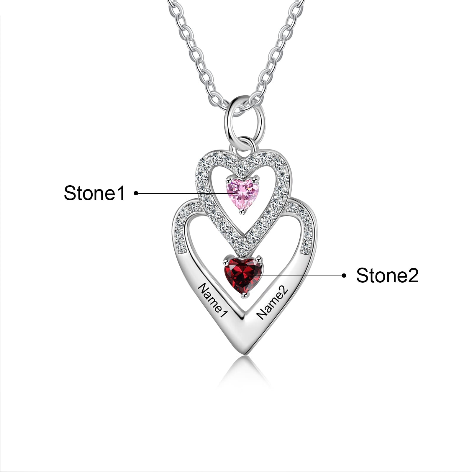 Custom Dual Heart Jewelry Personalized Birthstones Zirconia Pendant Necklace