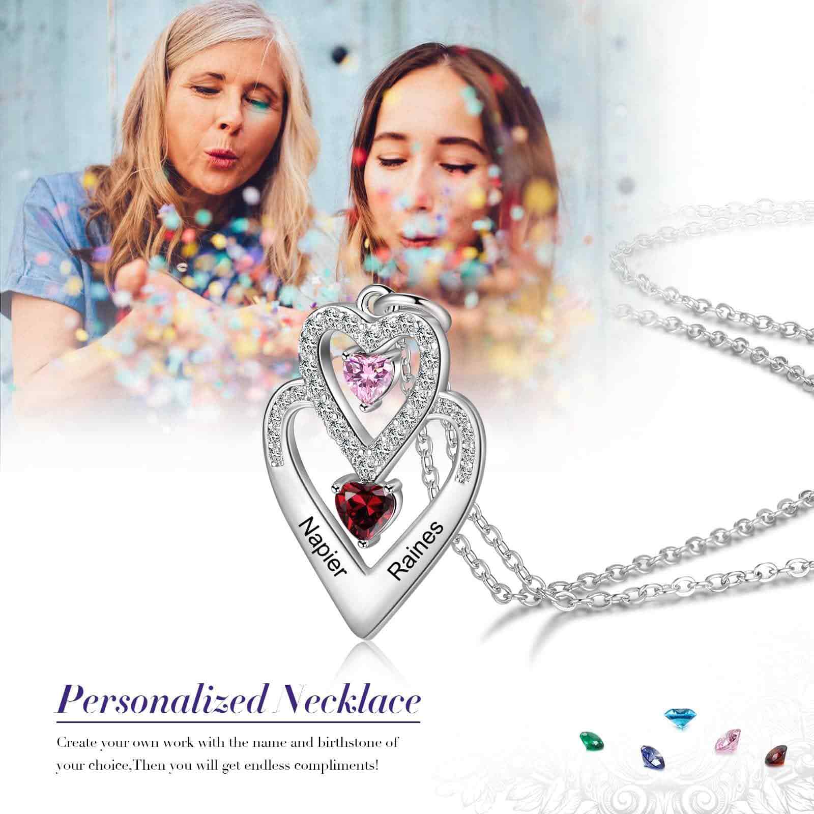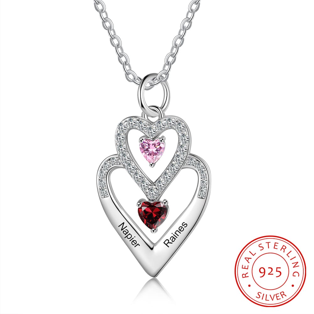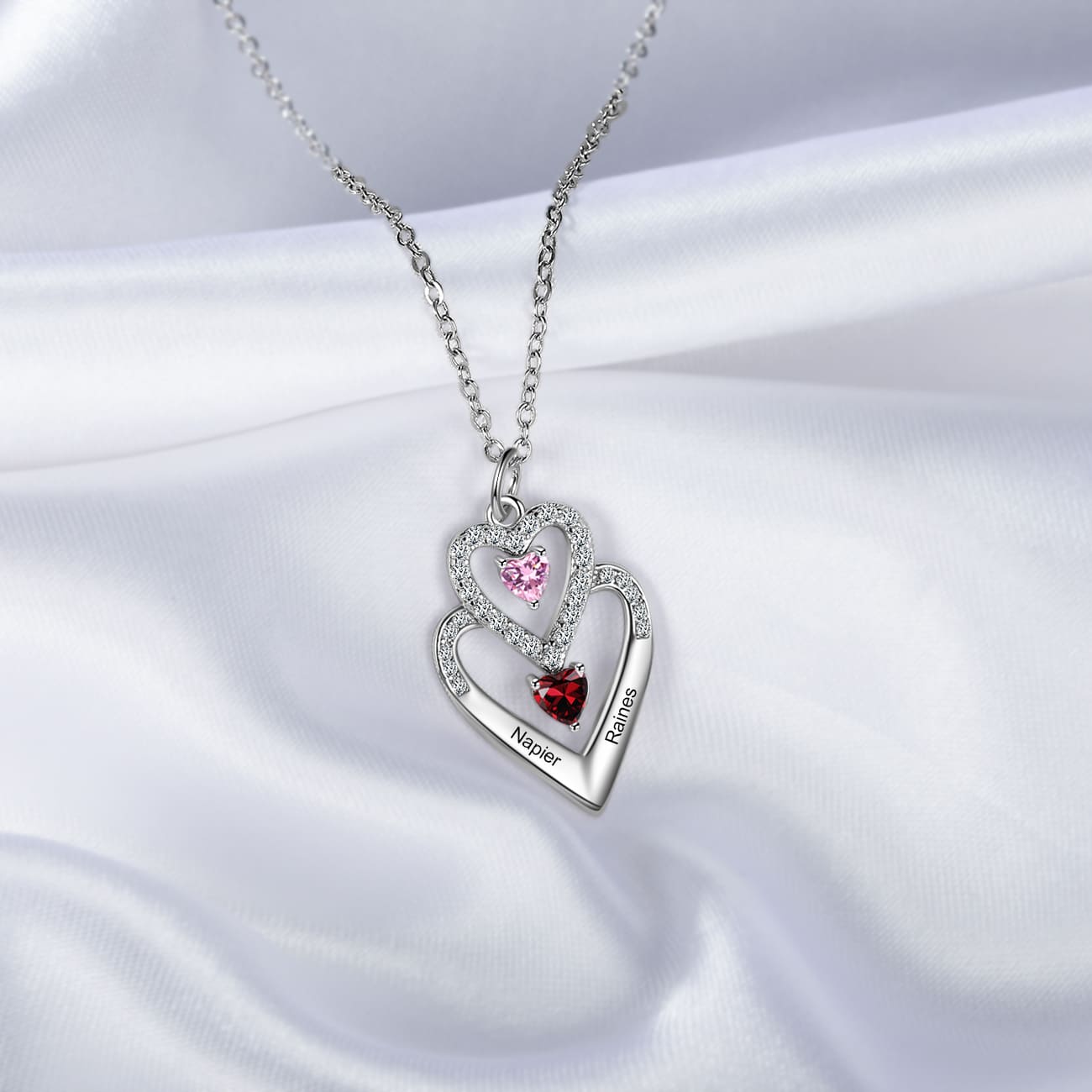 Custom Dual Heart Jewelry Personalized Birthstones Zirconia Pendant Necklace