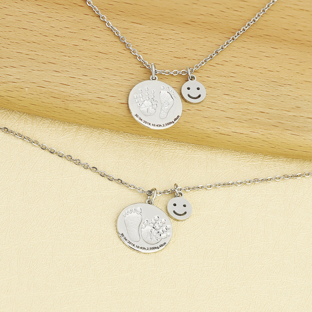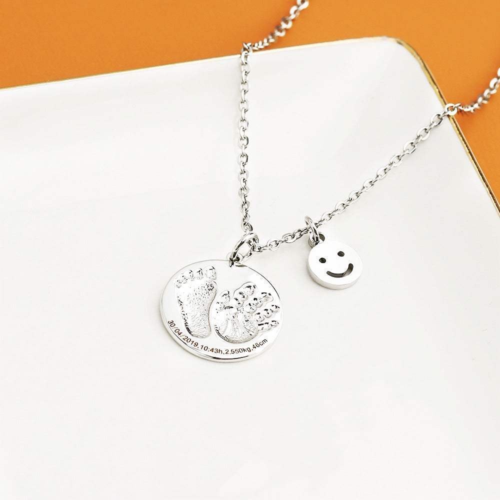 Customized Left & Right Foot Baby Birth Brand Personalized Smile Pendant Necklace