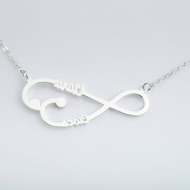 This is a piece of personalized jewelry, with 2 names accompanied by 2 birthstones, and the necklace is in the shape of an infinite symbol. This necklace is simple, and its design implies endless love, giving you a unique and elegant impression.
