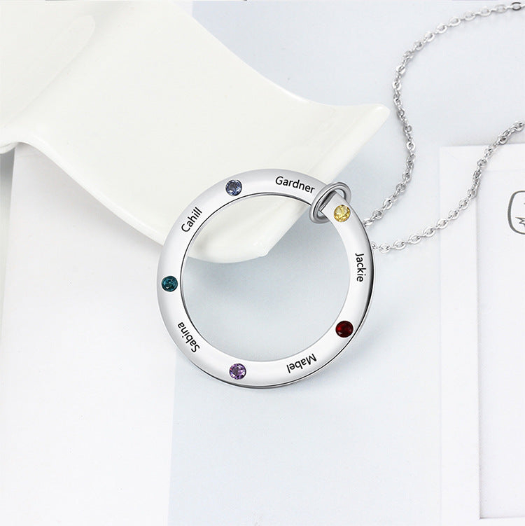 Necklace with Name on it Linked Circle Engraved 5 Names Birthstone Necklace