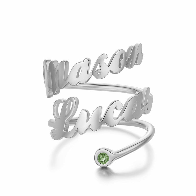 This is a personalized ring with customizable double names and birthstones. A simple custom ring allows you to seize precious moments at all times.