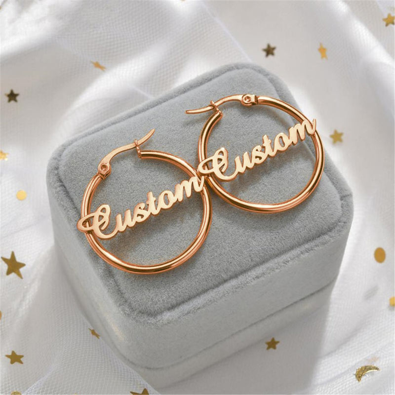 This is a pair of custom-named earrings. Turn your name into an exquisite piece of jewelry and send your best wishes.