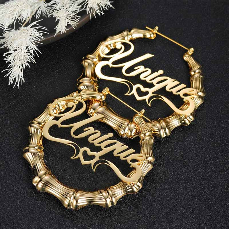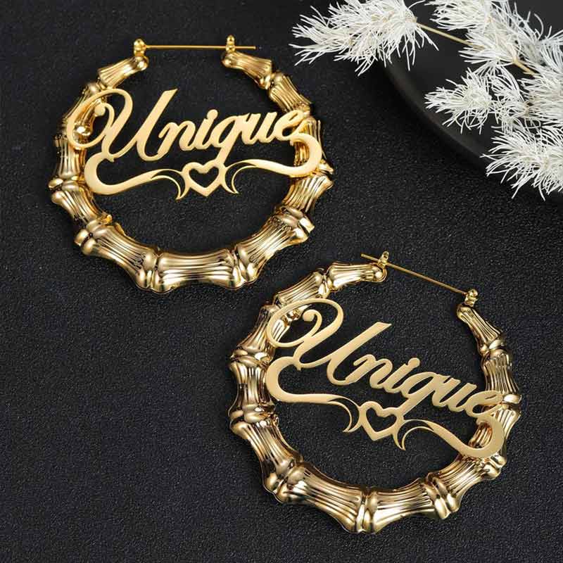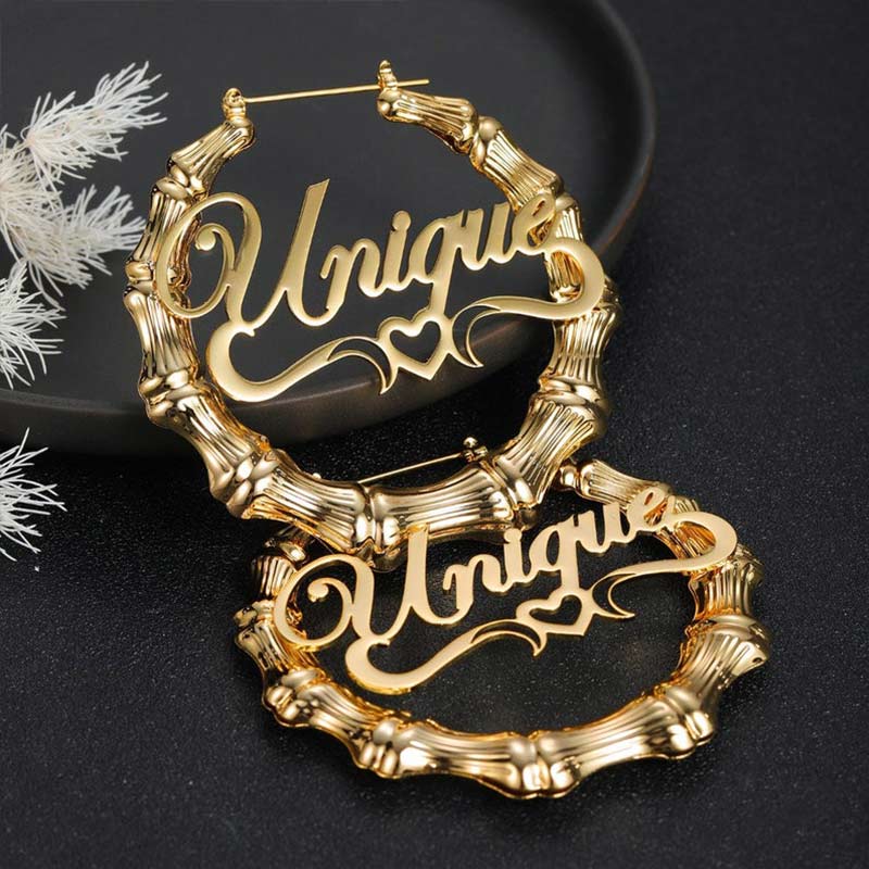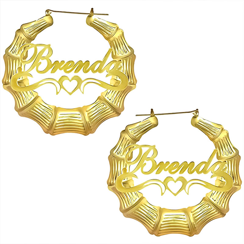 Custom Jewelry Personalized Name Bamboo For Women Hip Hop Stainless Steel Big Circle Round Large Earrings