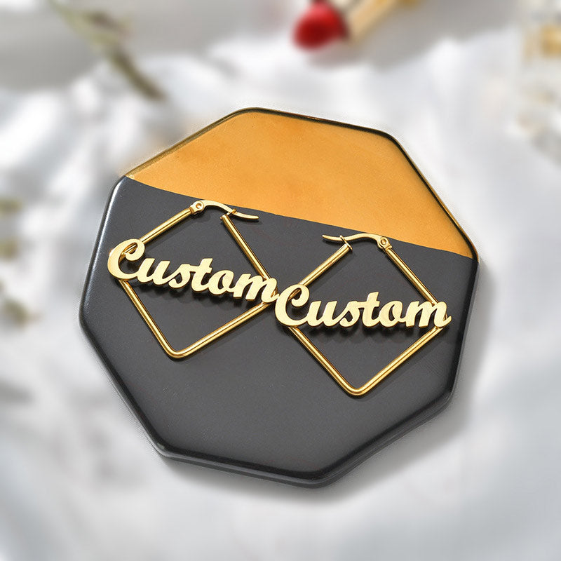 This is a pair of custom-named earrings. Turn your name into an exquisite piece of jewelry and send your best wishes.