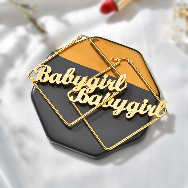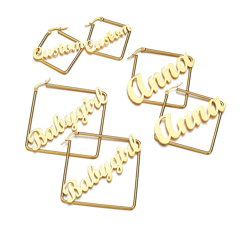 18K Gold Color Preserving Plated Stainless Steel Name Custom Earrings Letters Square Earrings