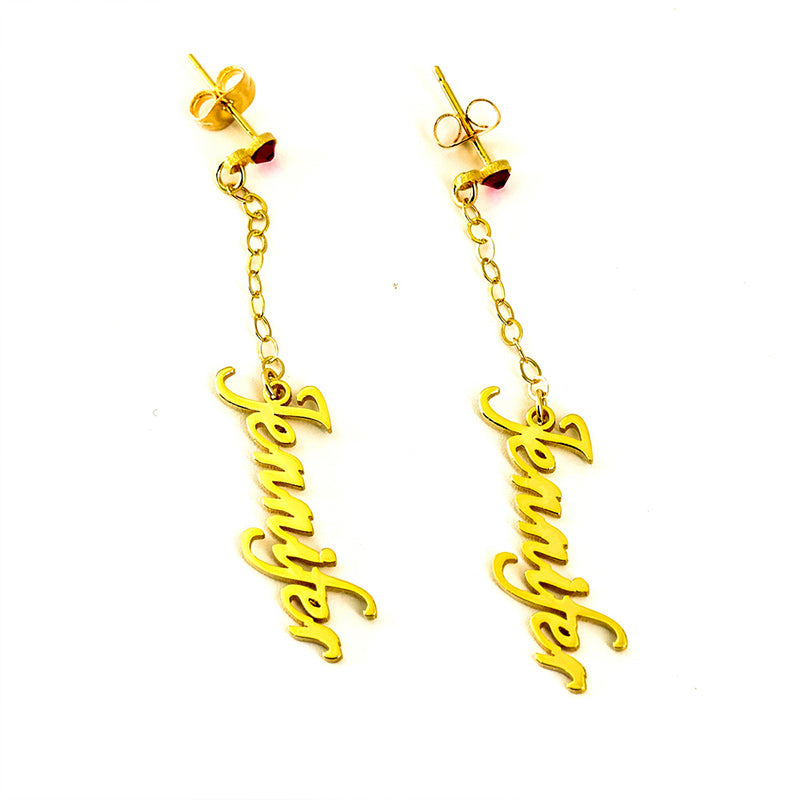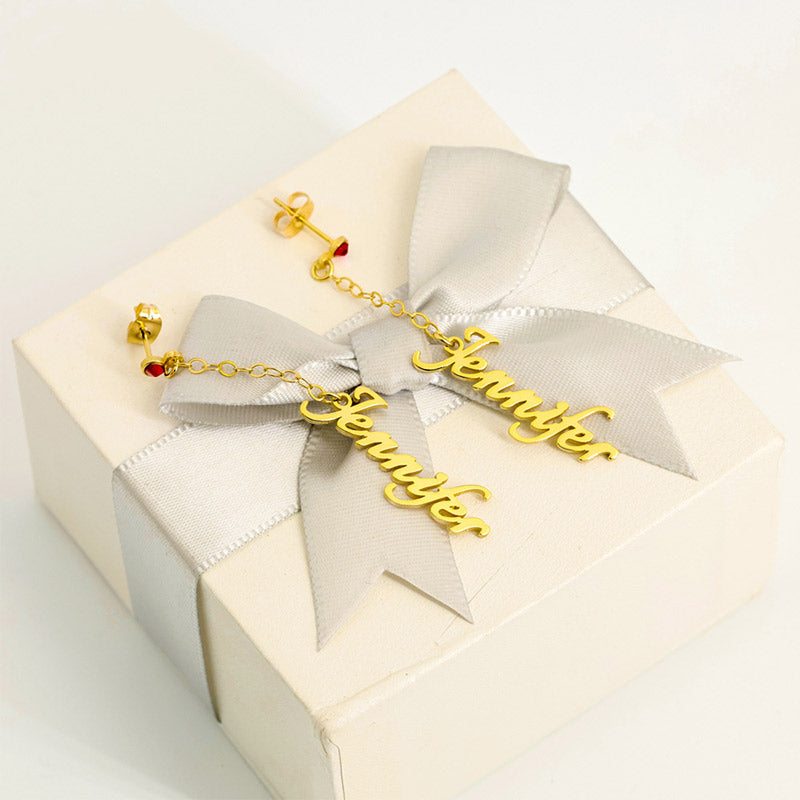 This is a pair of custom-named earrings. Turn your name into an exquisite piece of jewelry and send your best wishes.