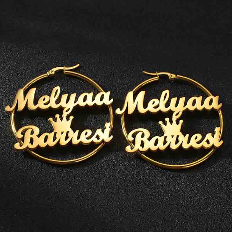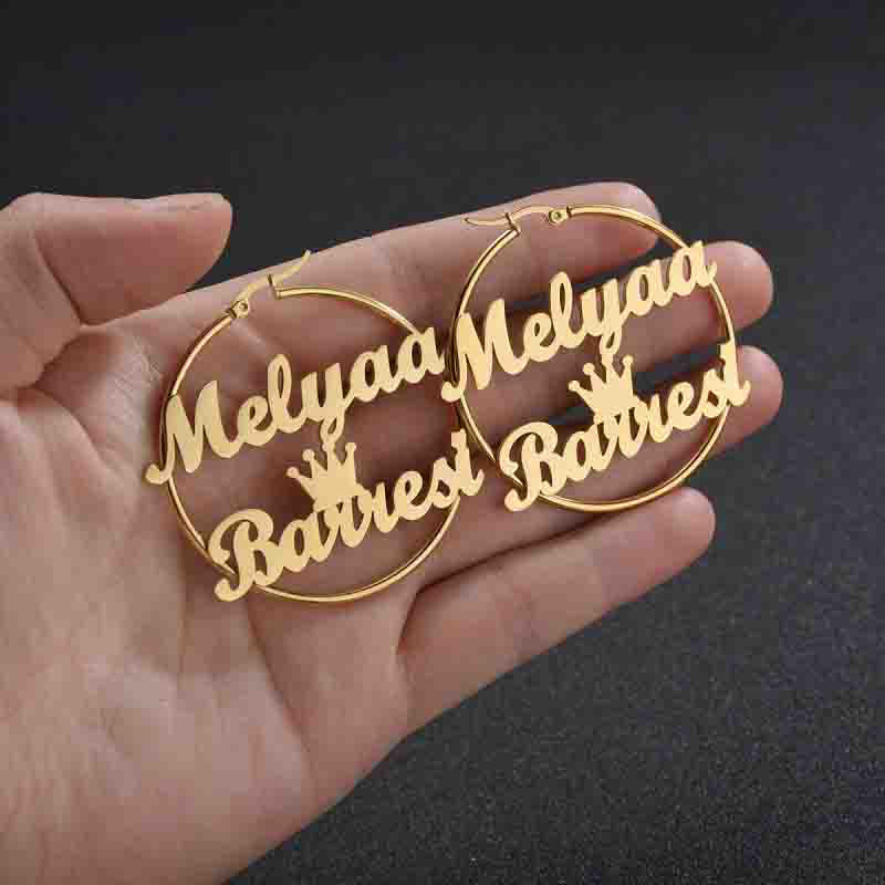 Customized Stainless Steel Double Row Name Large Earrings Personalized Crown Round Earrings