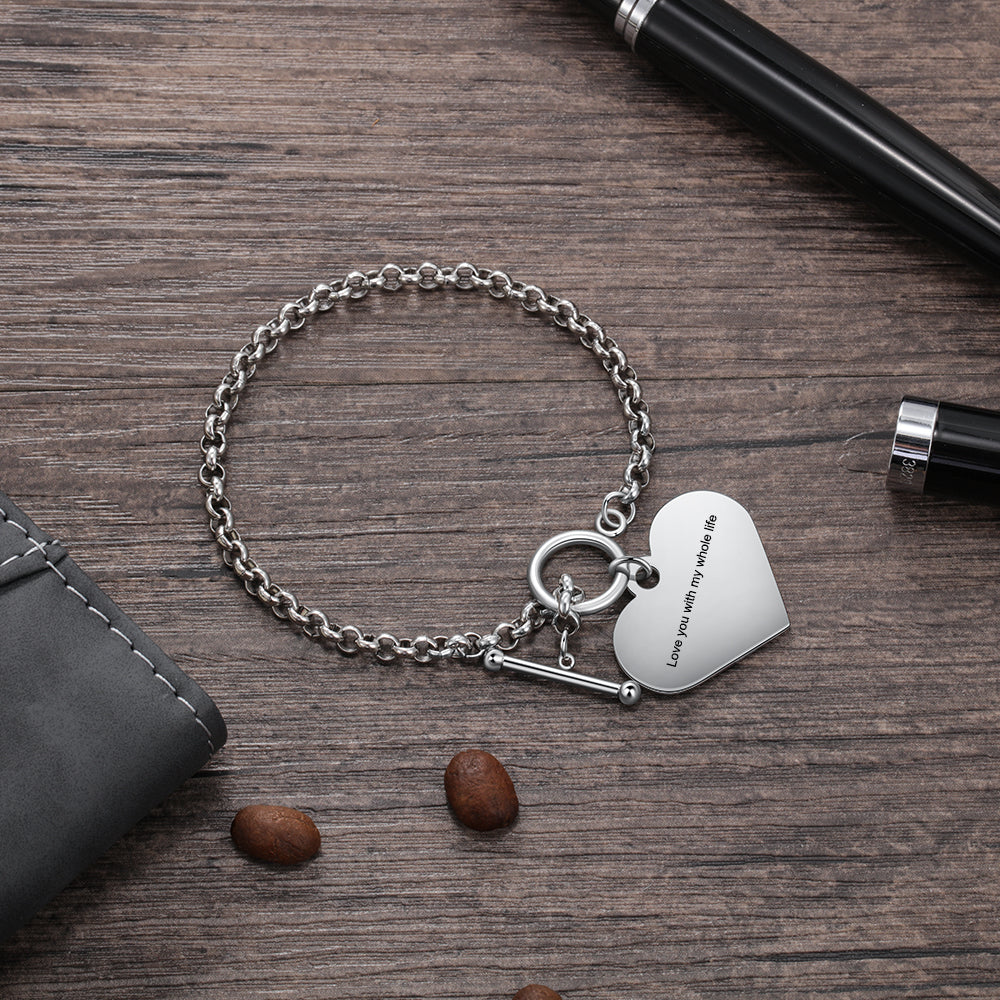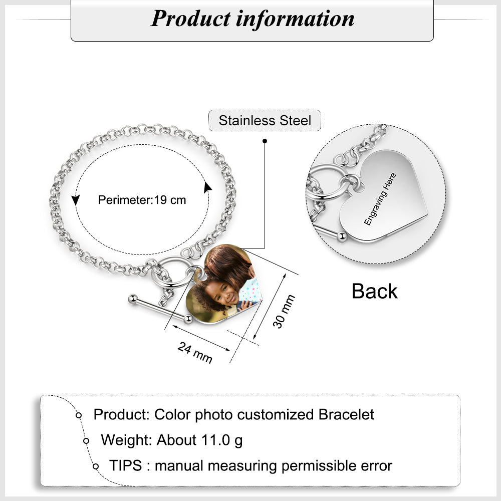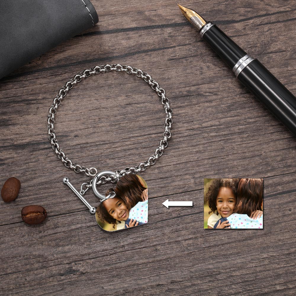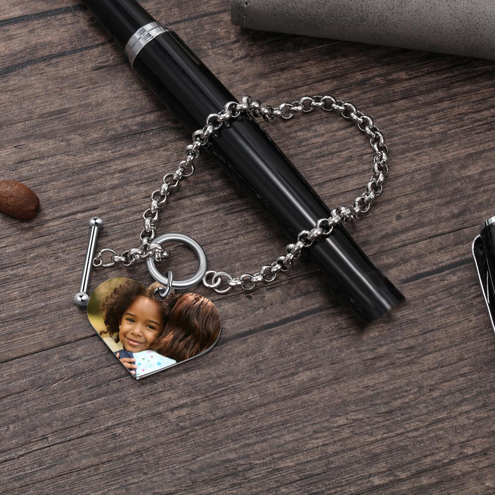 Minimalist Heart Photo Bracelet Toggle Clasp Cuff Bracelet Custom Photo Bracelets