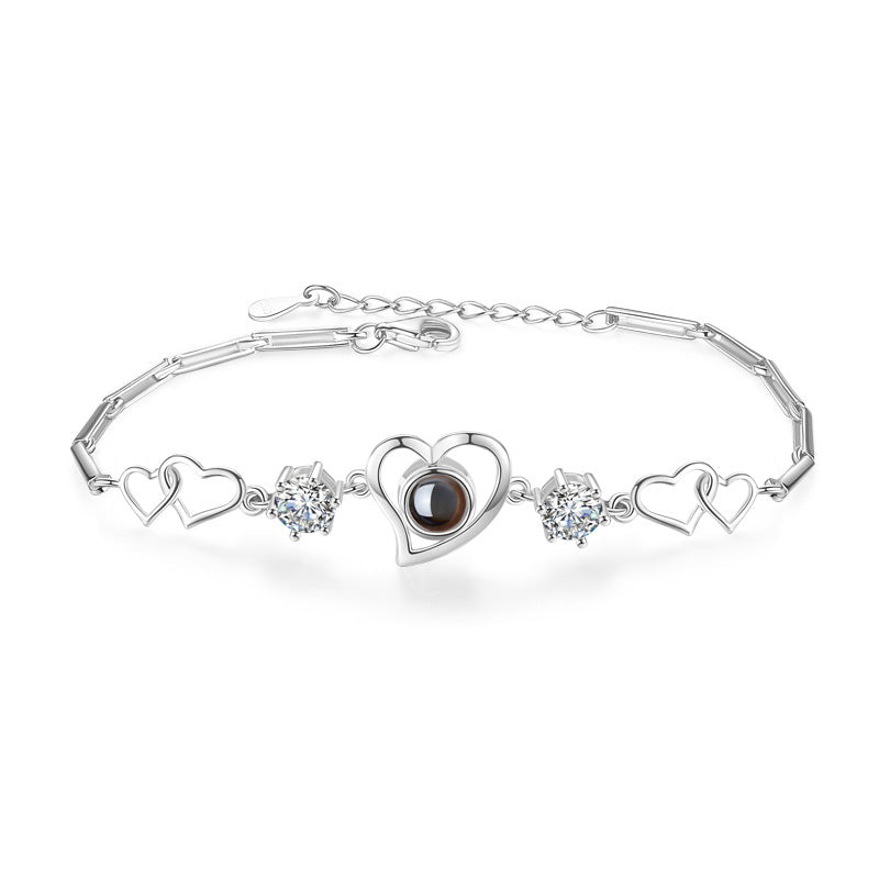 Surrounded by love hearts, representing a world of love, design a love bracelet of your own, with the photo engraved on a nano-engraved crystal in the heart of love.