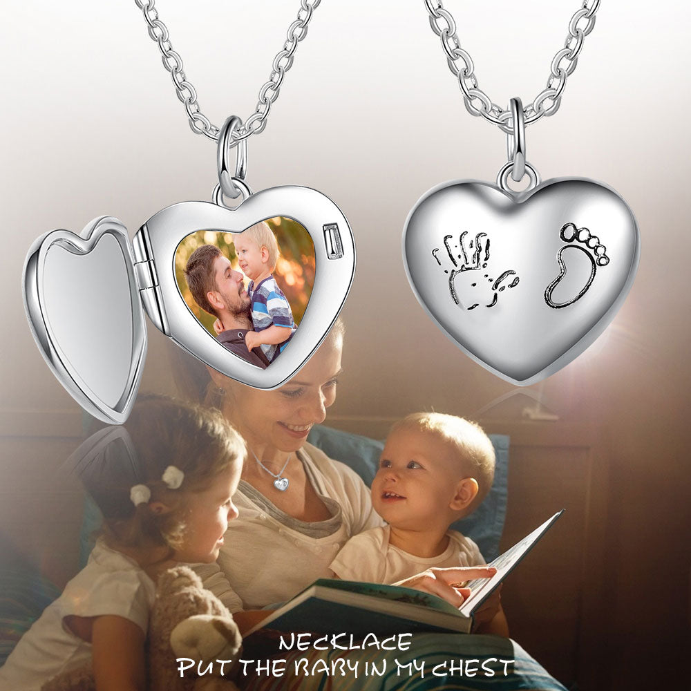 Custom Heart Photo Locket Necklace Baby Footprint Engraved Sweet Photo Necklace