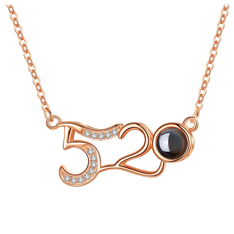 520 means "I love you". The necklace is decorated with a photo nano-engraved crystal.