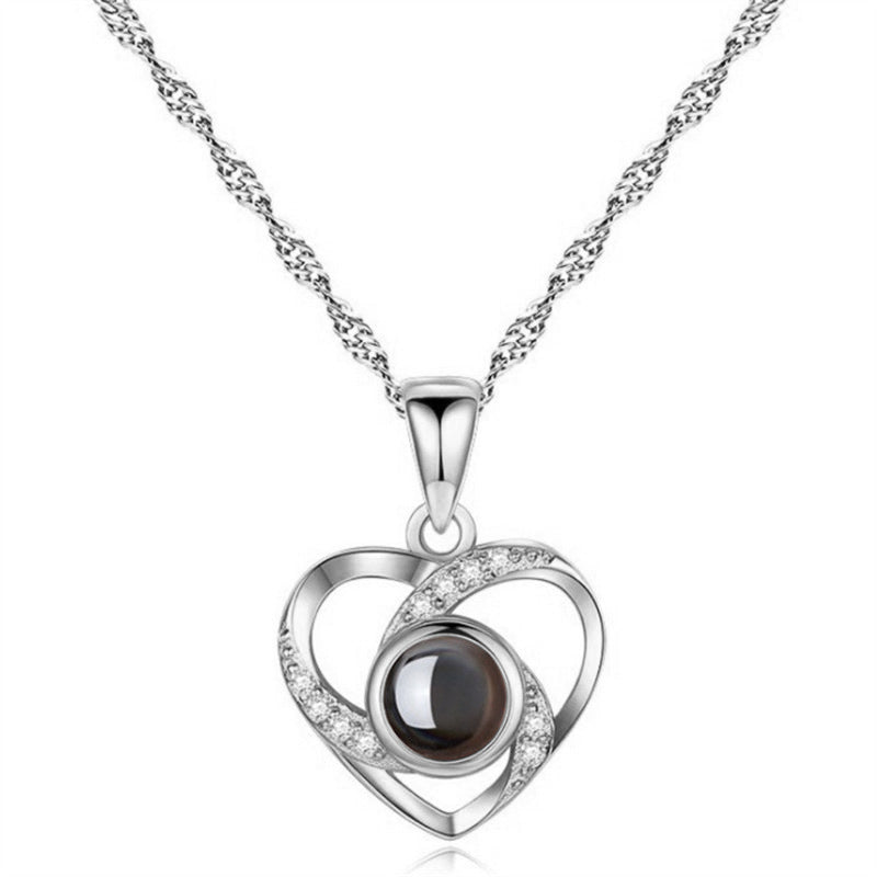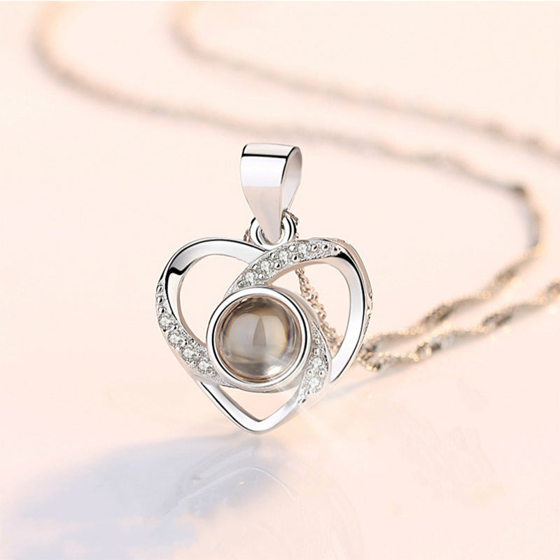 Custom S925 Silver Heart Necklace Personalized Photo Projection Necklace