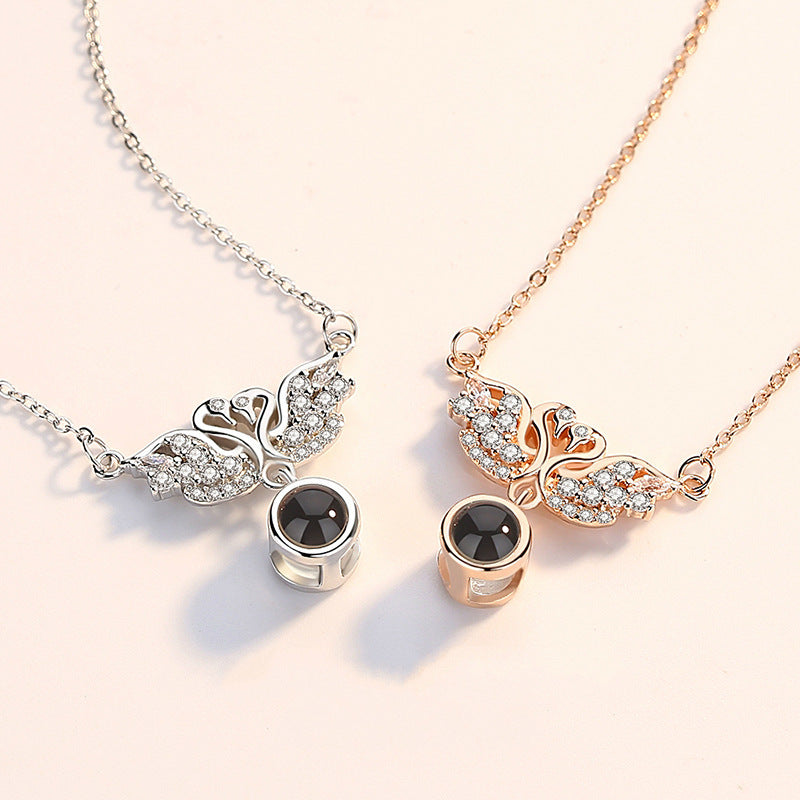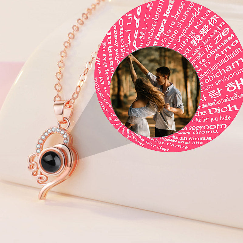 The most romantic thing you can do is to say I love you to your loved one in 100 languages of the world. Using nano-micro-engraving technology, your photo is hidden inside the pendant of a custom necklace, and by projecting it under a beam of light, the message can be seen. Customize such a projection necklace for you to become a unique piece of jewelry that sets off your unique personality and thoughts.