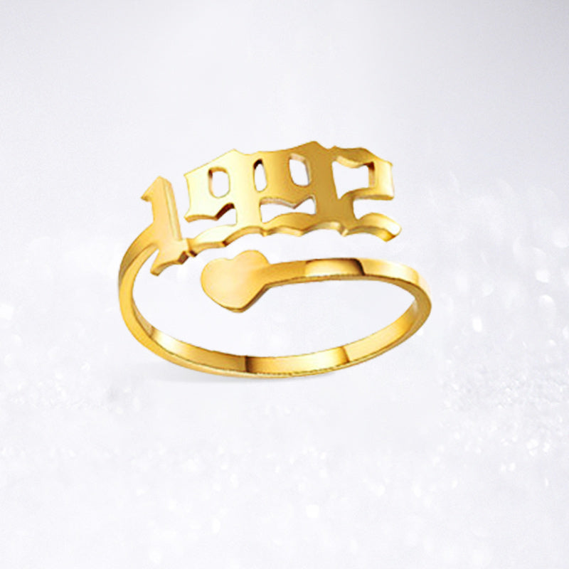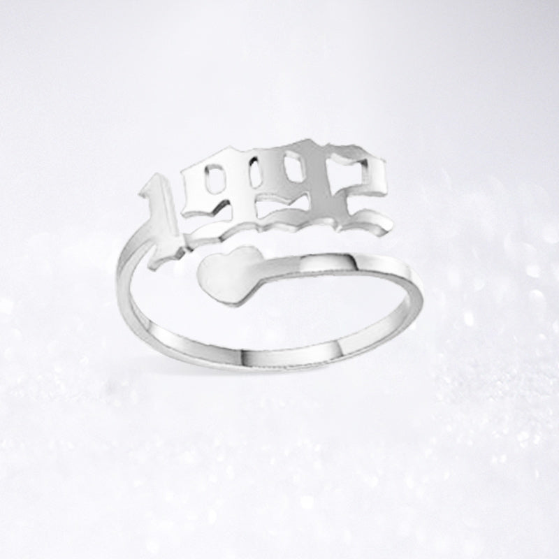 It's an adjustable ring with a personalized shape and an adorable heart. Turn a meaningful year into delicate jewelry and send your best wishes.