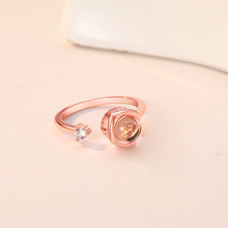 This rose-shaped necklace symbolizes that your love will never fade away. Design an exquisite 925 sterling silver photo projection ring and put your lucky ring on.
