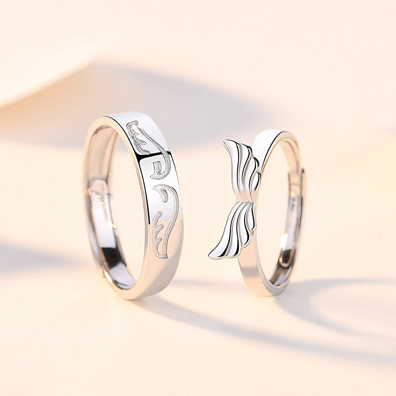 Custom S925 Silver Angel Wings Ring Personalized Classic Adjustable Rings