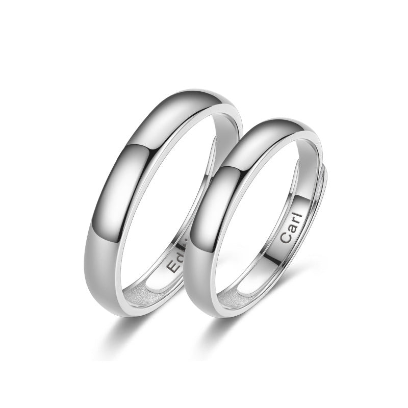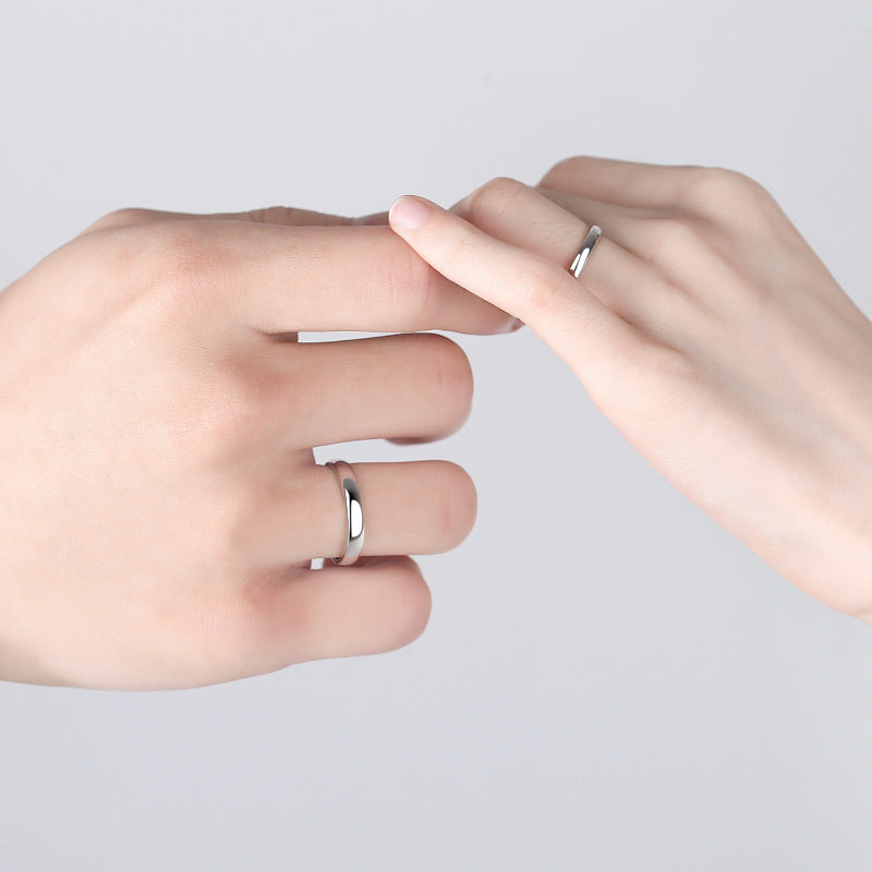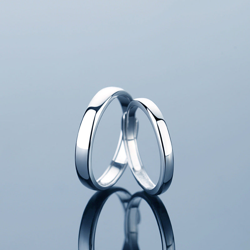 Custom S925 Silver Glossy Opening Ring Personalized Classic Pure Love Couple Pair Ring
