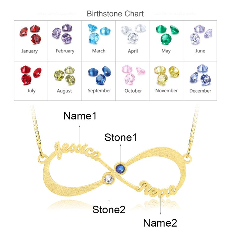 Infinity Necklace with 2 Names Custom Birthstone Necklace