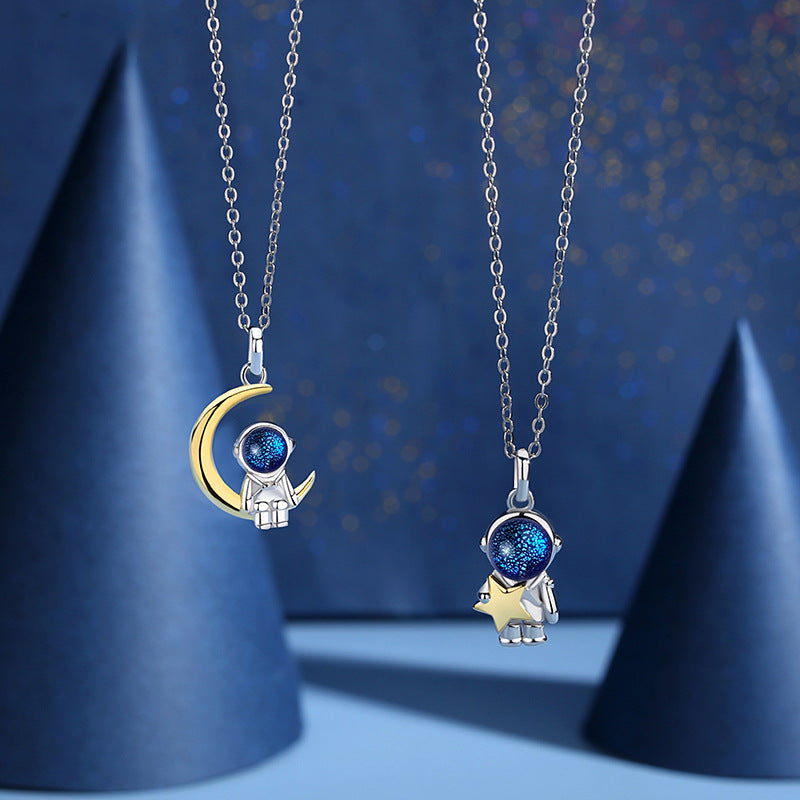 925s Astronaut Matching Couple Necklaces for Space Fans