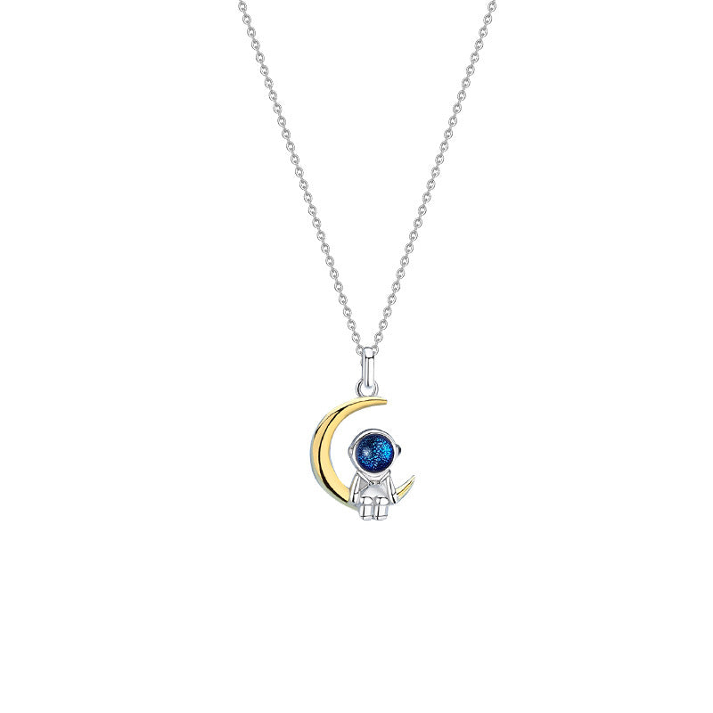 This couple's necklace comes from a desire for a romantic universe. Wear your own astronaut necklace to add an element of mystery.