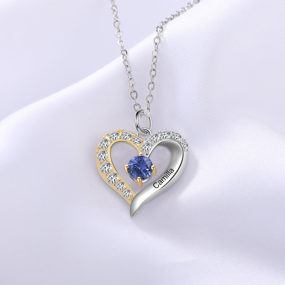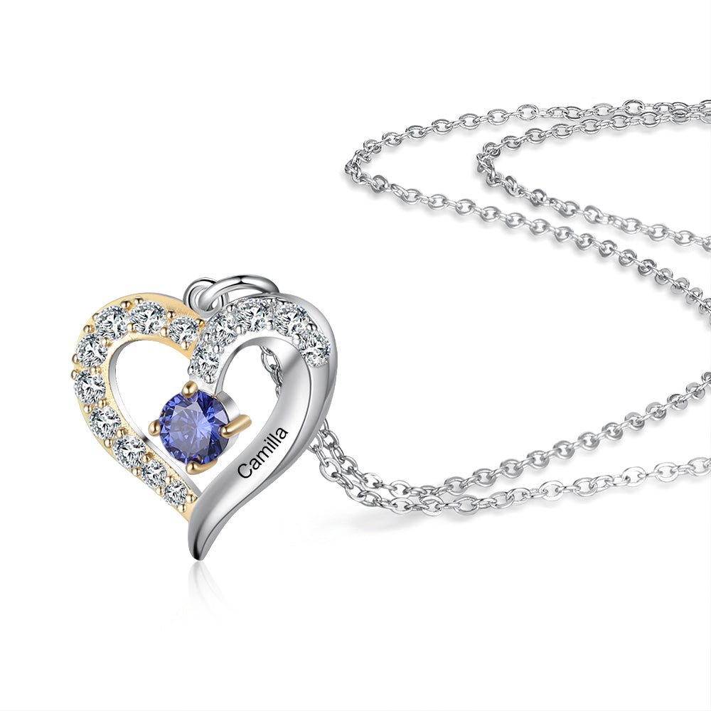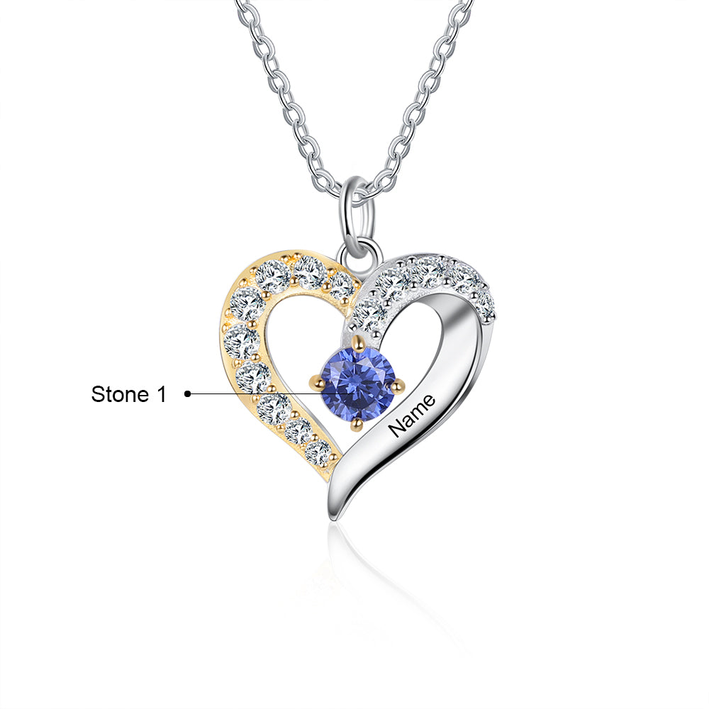 Custom S925 Silver Cubic Zirconia Necklace Personalized 1 Name Birthstones Heart Necklace
