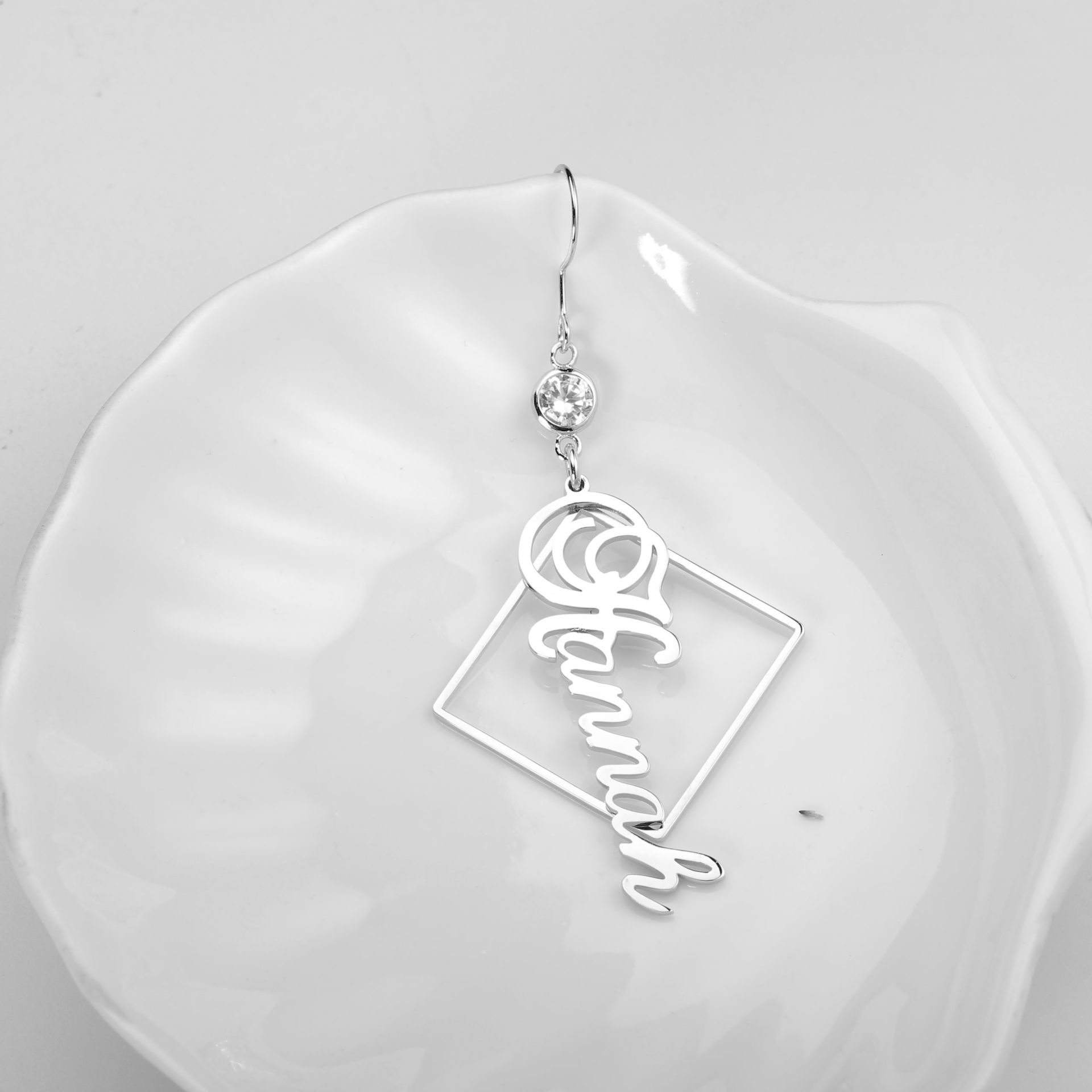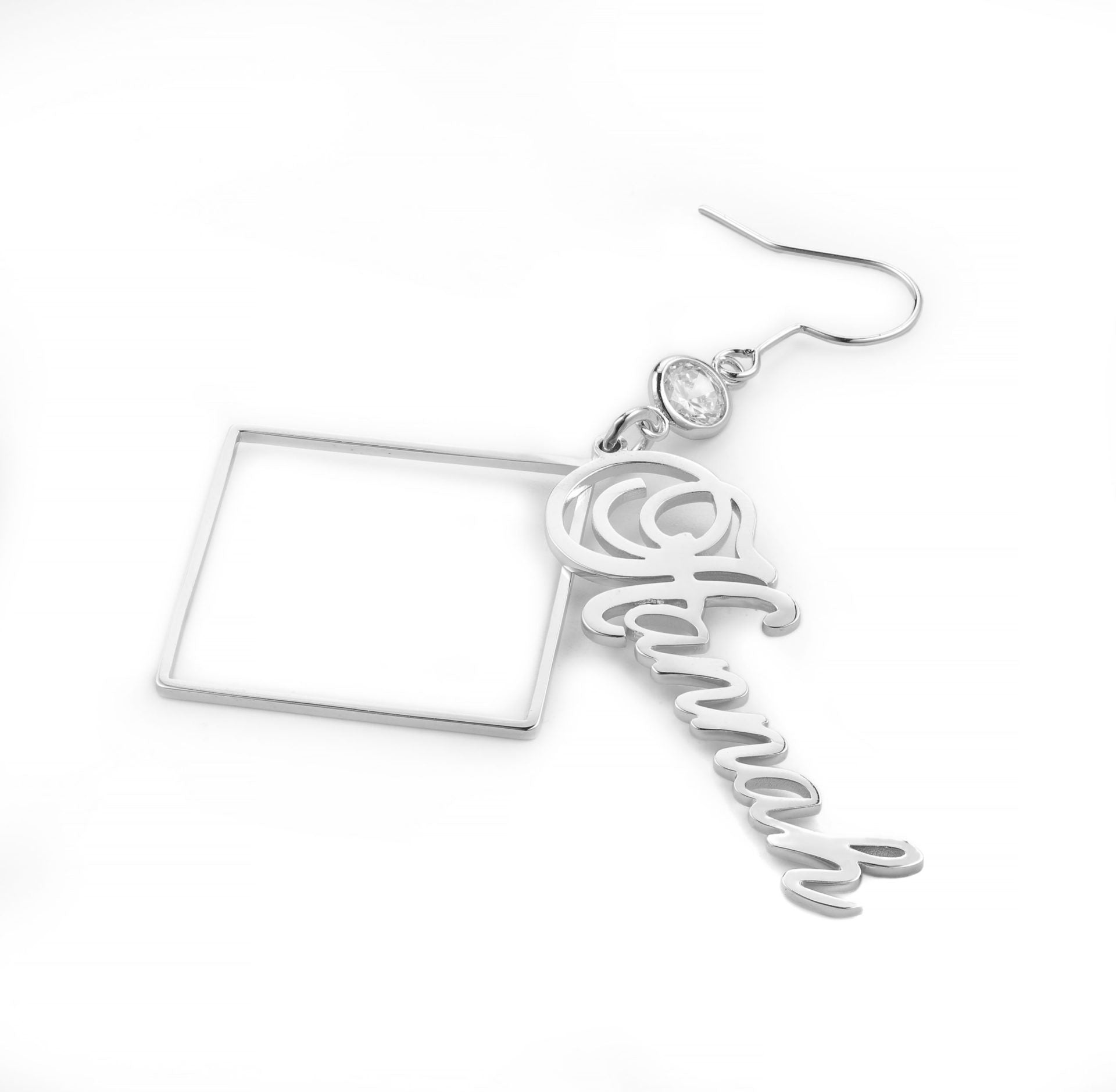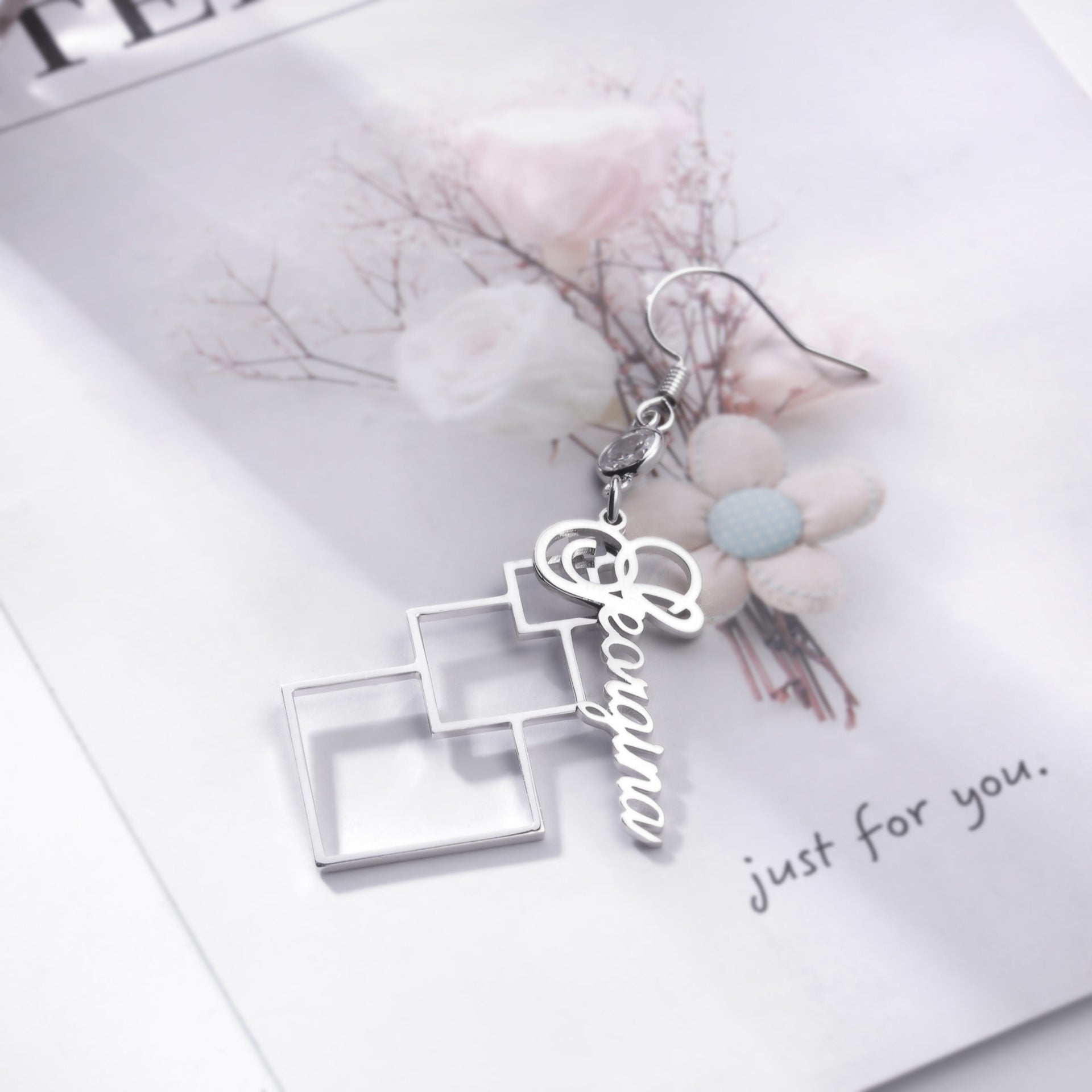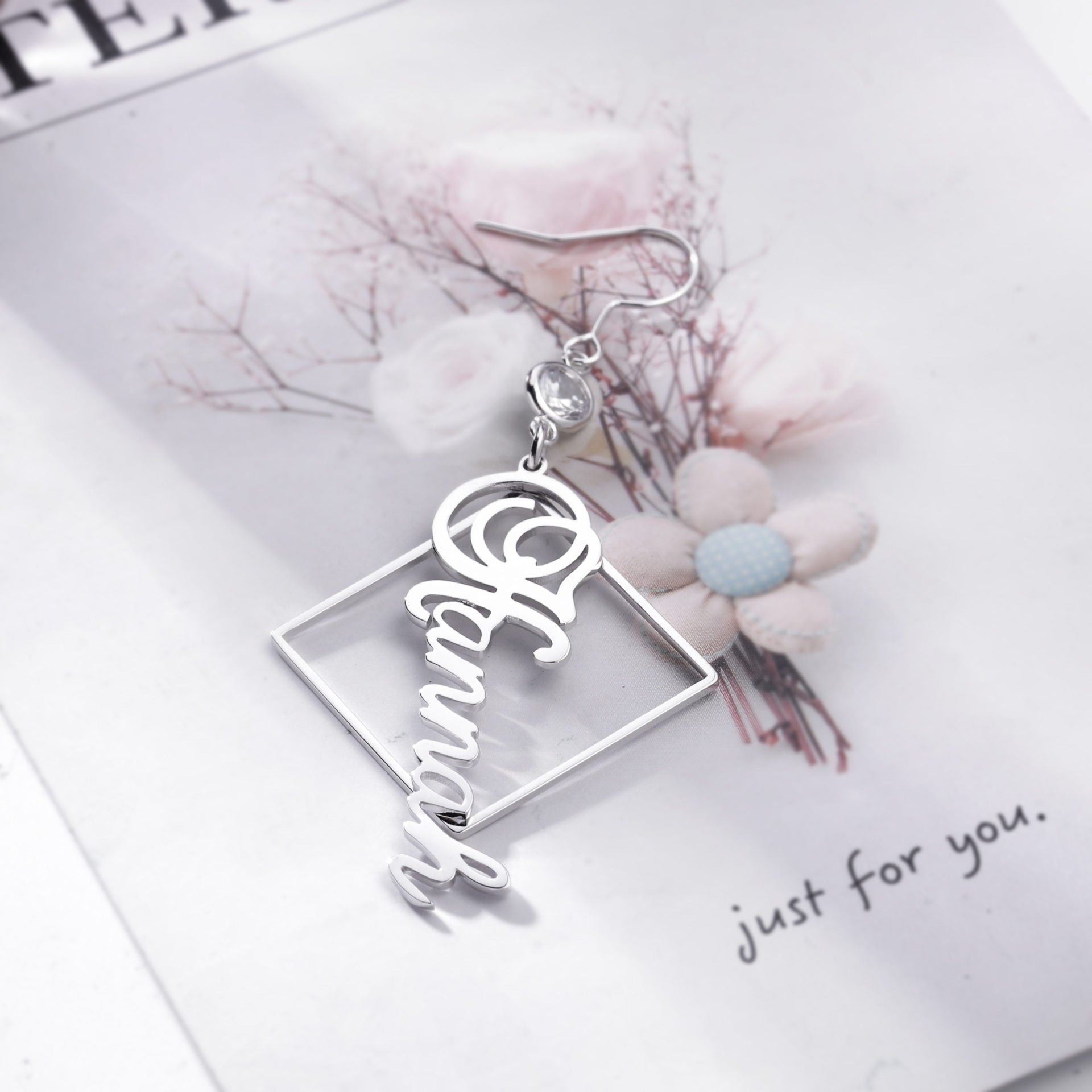 Custom S925 Silver Earrings Personalized Earrings Name Square Letters