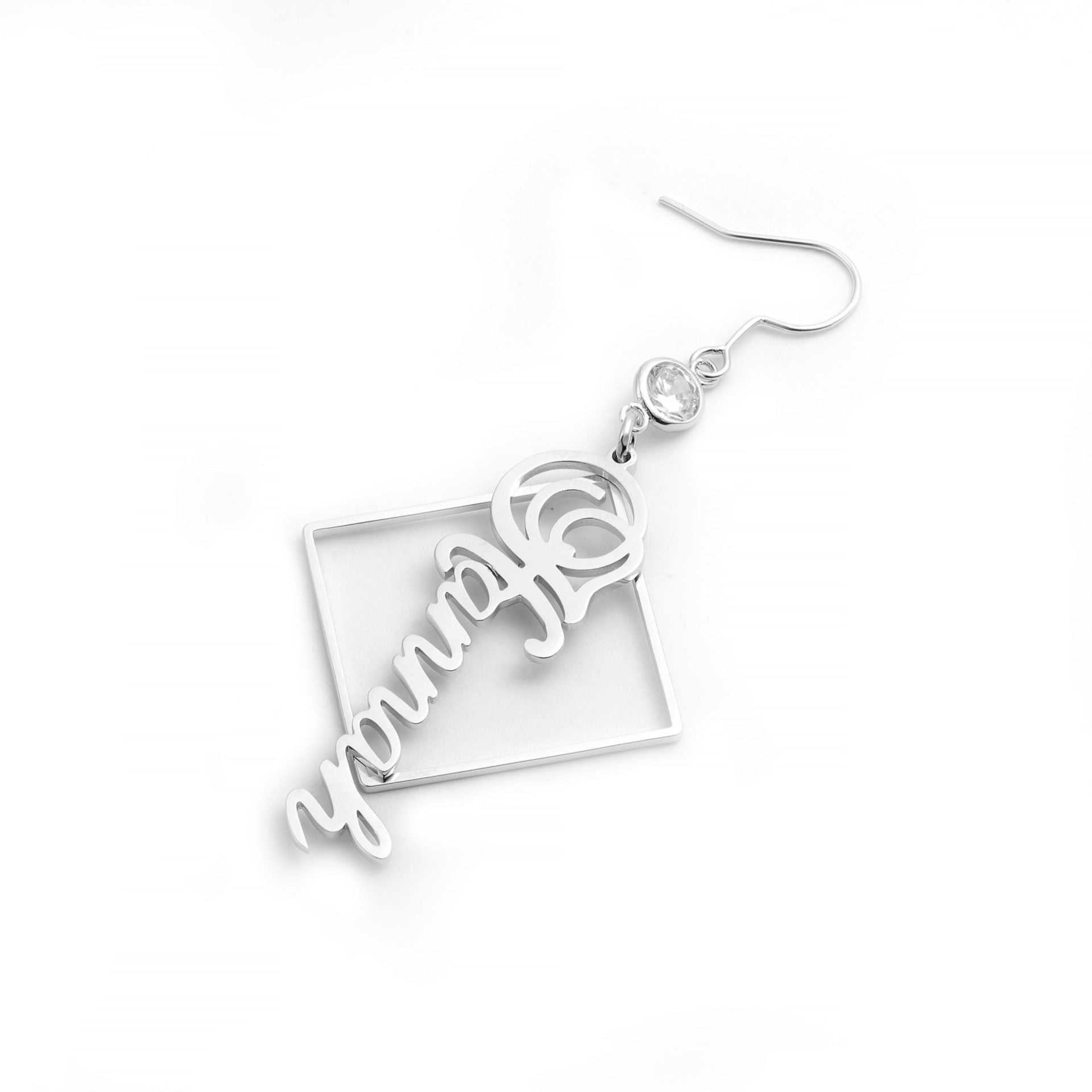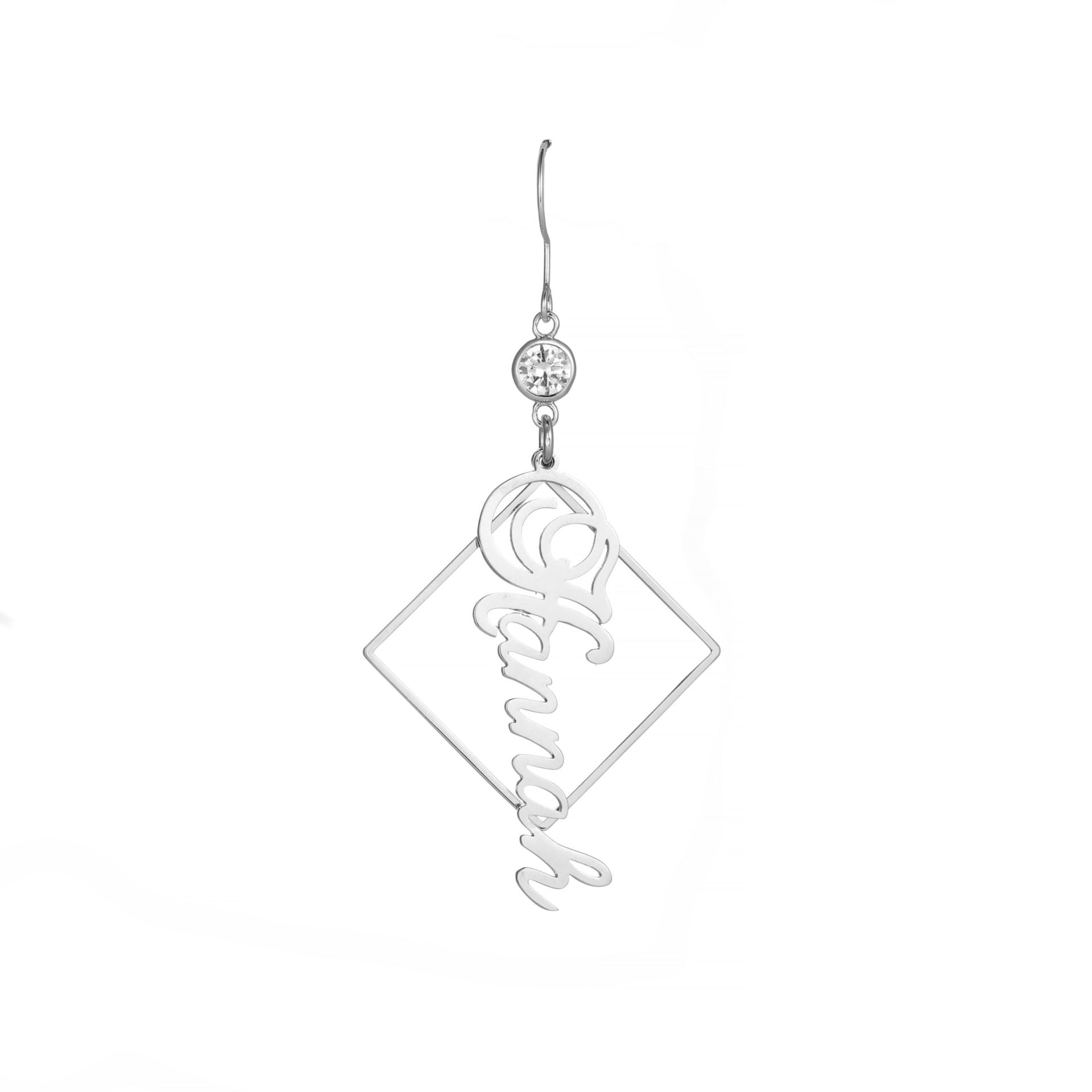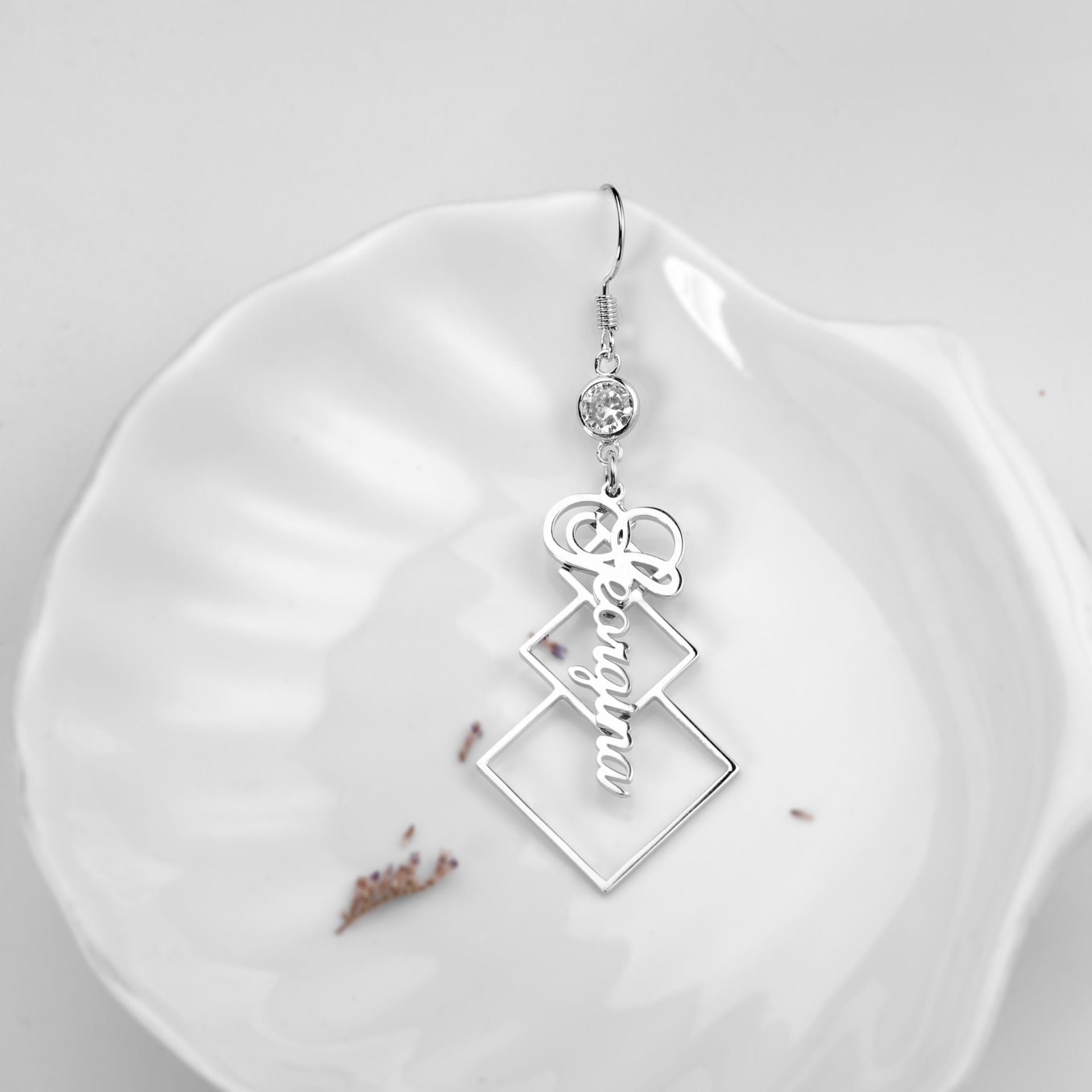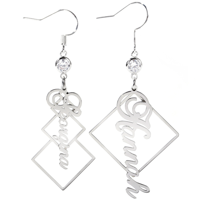 This is a pair of custom-named earrings. Turn your name into an exquisite piece of jewelry and send your best wishes.
