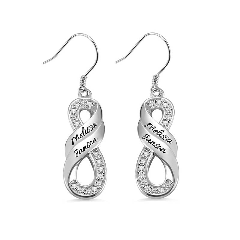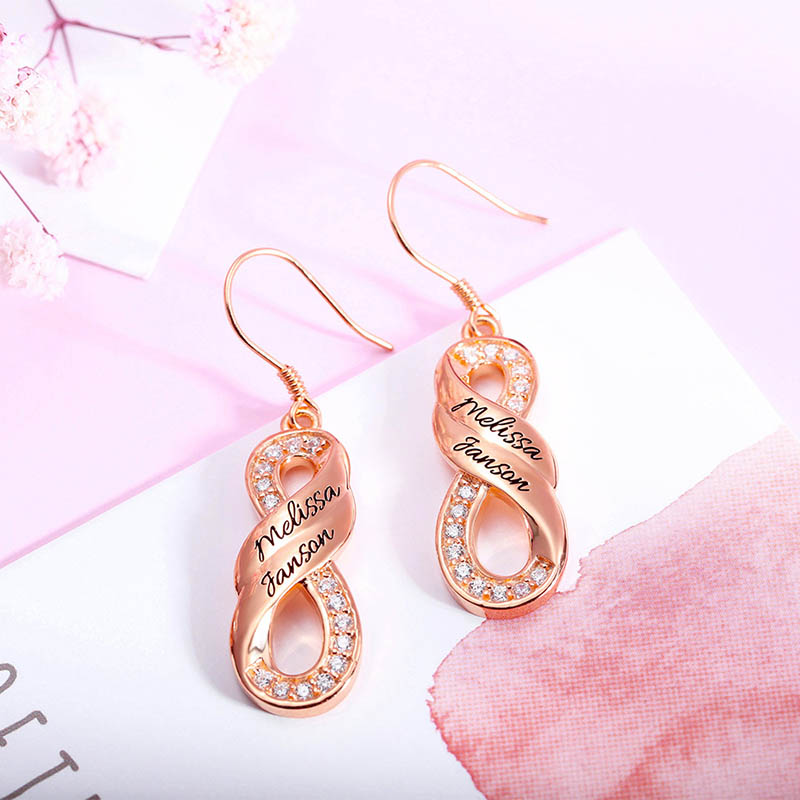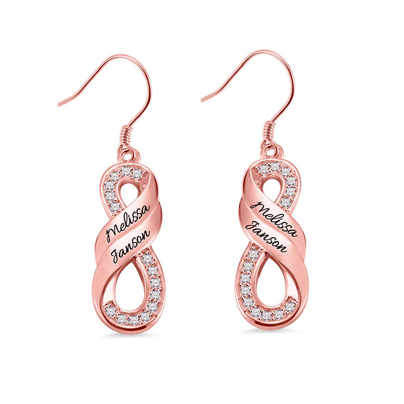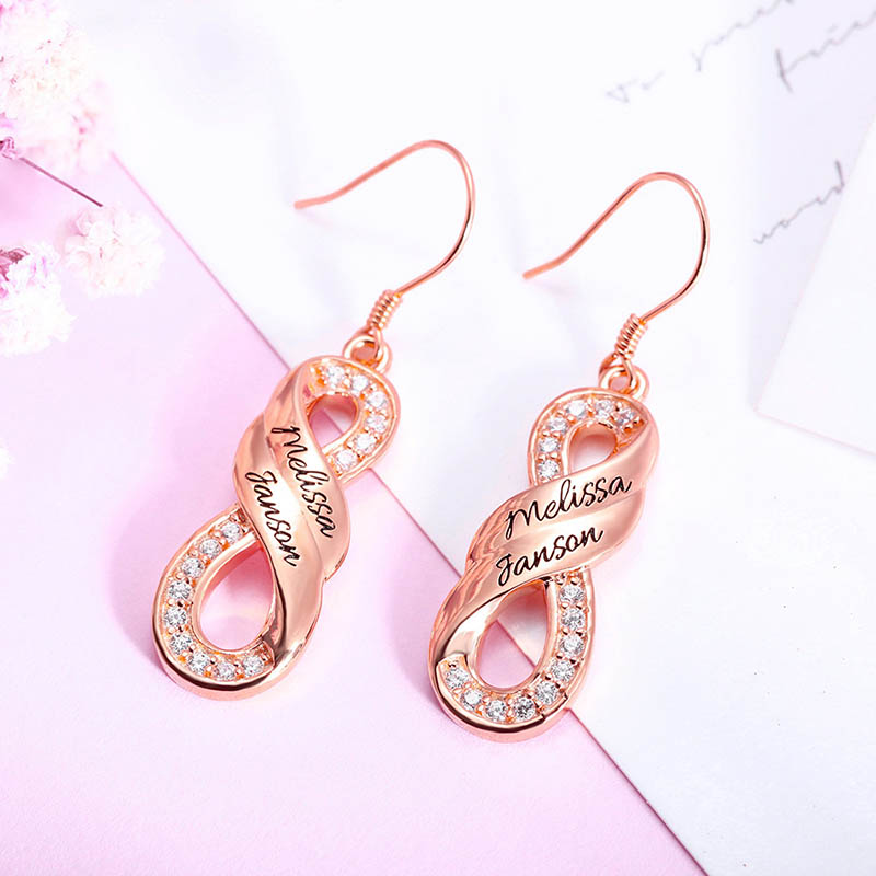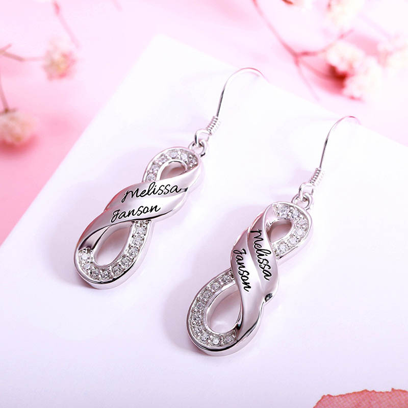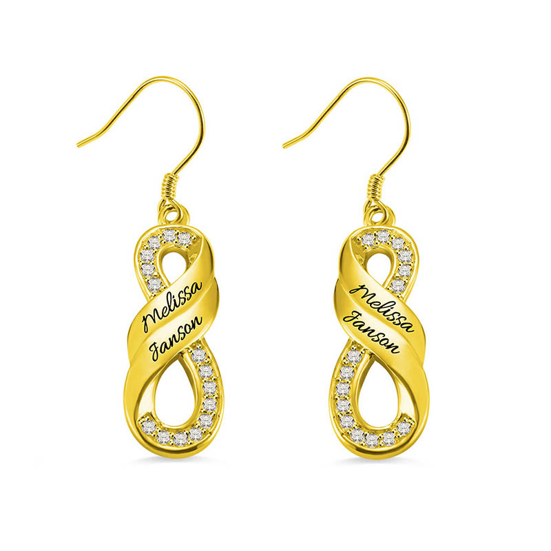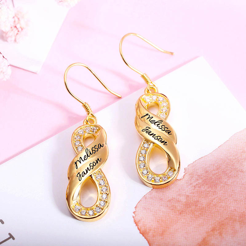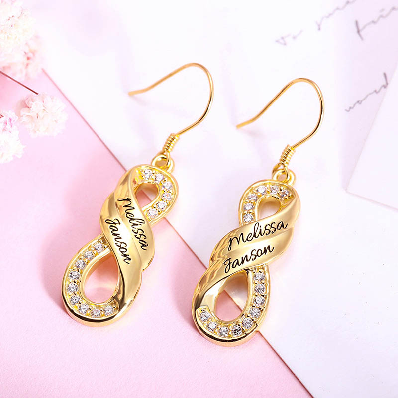 This is a pair of custom-name earrings. Turn your name into an exquisite piece of jewelry and send your best wishes.