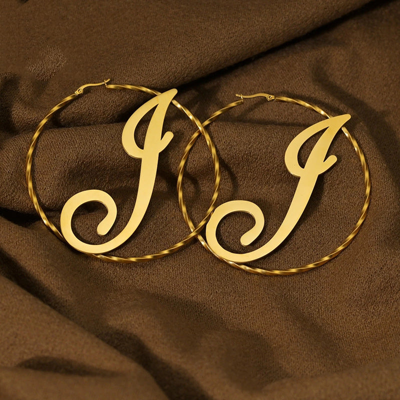 Custom Stainless Steel Spiral Pattern Name Earrings Personalized Round Twist Big Earrings