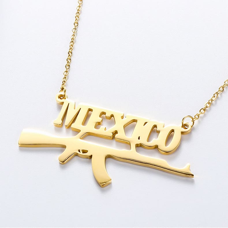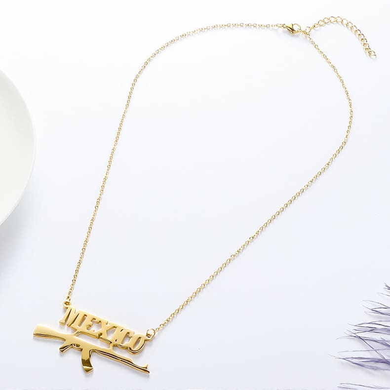 Customized Hollow Plating Necklace Personalized 98K Gun Elements Name Necklace