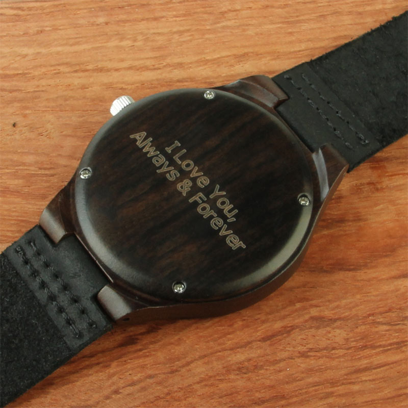 Customized Photo & Text Watch Personalized Ebony Wood Engraved Watch Souvenir