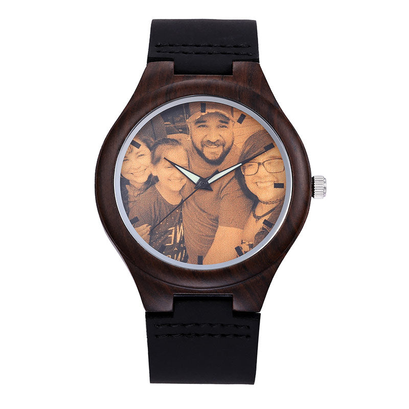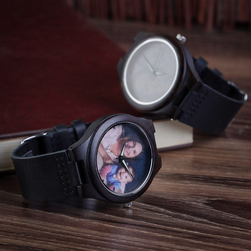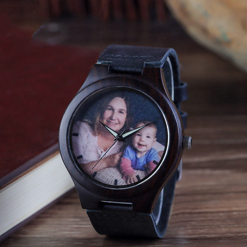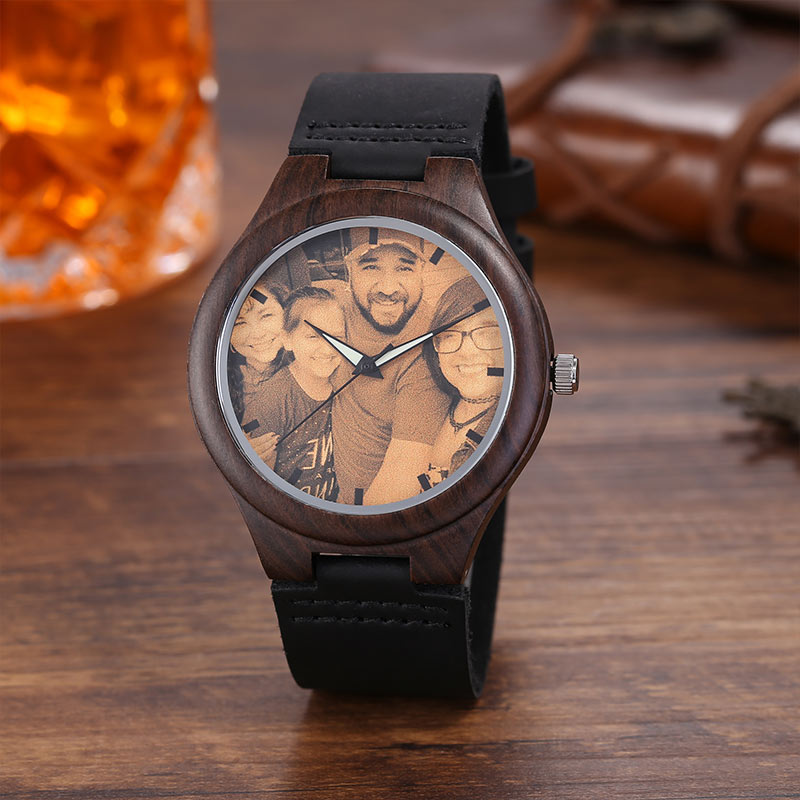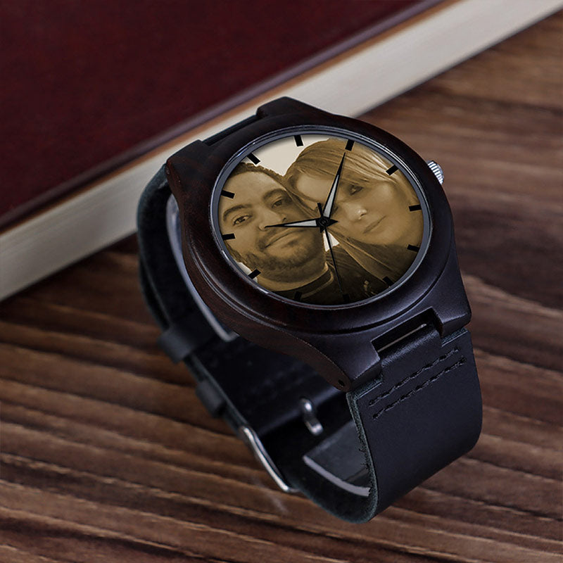 This is a fashionable classic wood watch. Your photo will be printed on the face of this watch, and the back cover can be engraved with the text you want. Create a unique photo watch that captures your time even more.