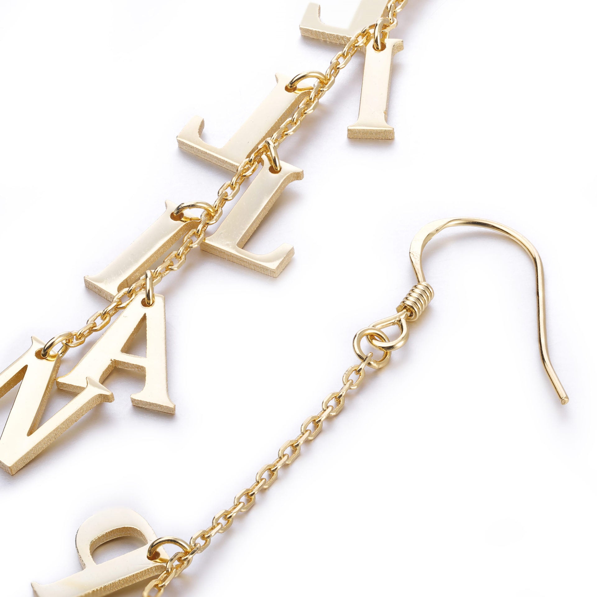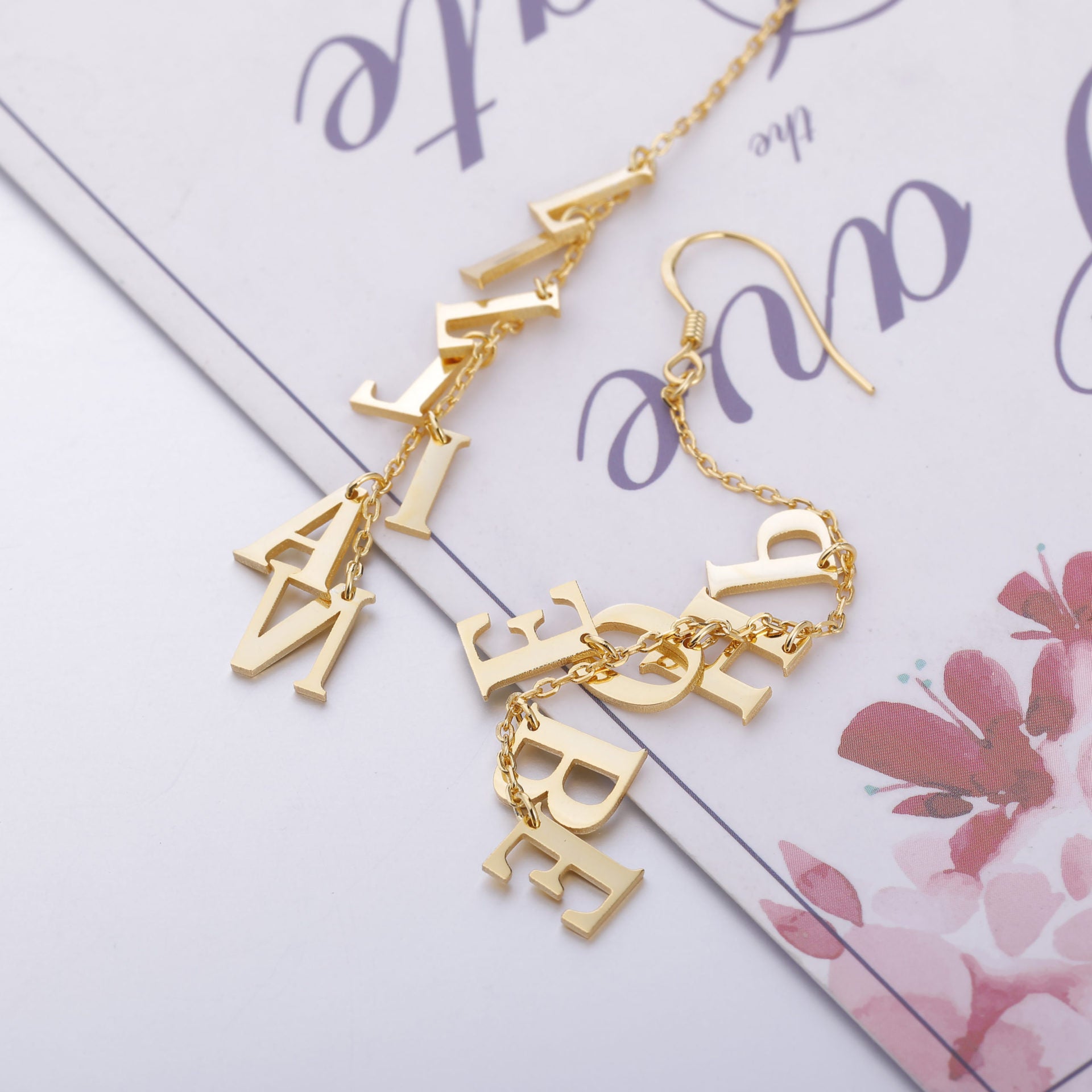 This is a pair of custom-named earrings. Turn your name into an exquisite piece of jewelry and send your best wishes.