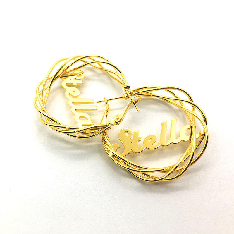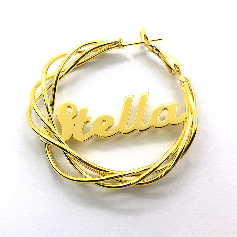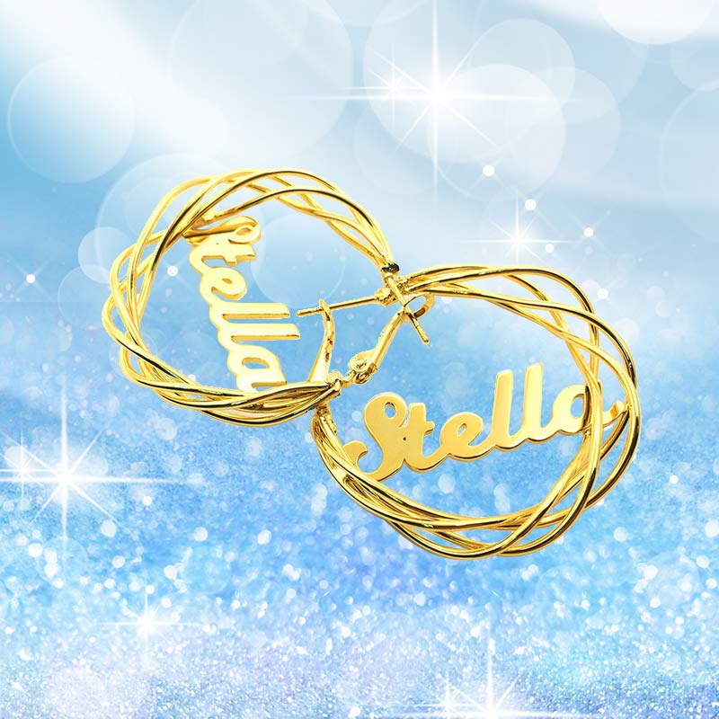 This is a pair of custom-named earrings. Turn your name into an exquisite piece of jewelry and send your best wishes.