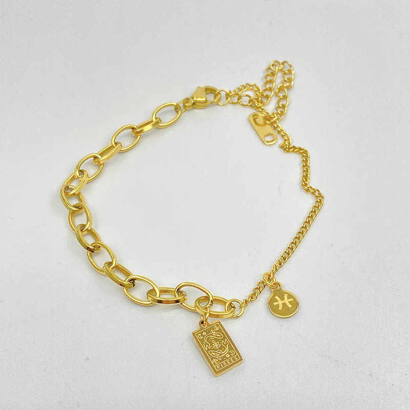 Gold Zodiac Sign Bracelet Square Card Tarot Charm Bracelet