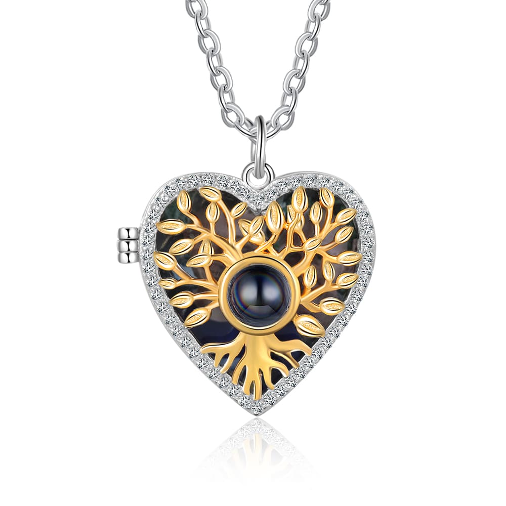 This is a customizable name and photo projection necklace with a hidden heart visible. This romantic name&photo projection necklace displays your beloved photo in an exquisite pendant, the front of the pendant is obsidian written “ I love you ” in 100 languages,and the back is a secret place to engrave the name or love words.