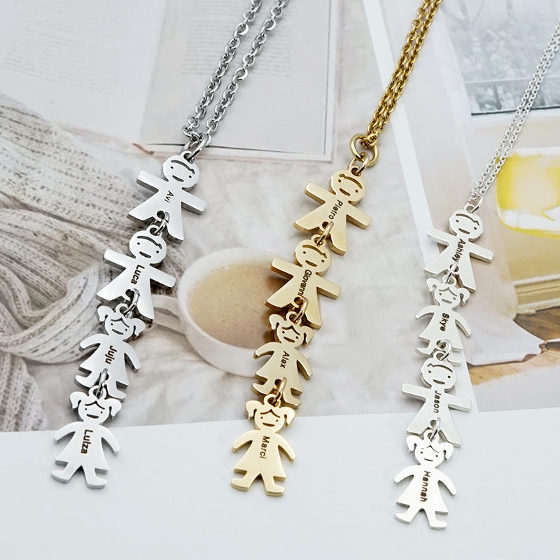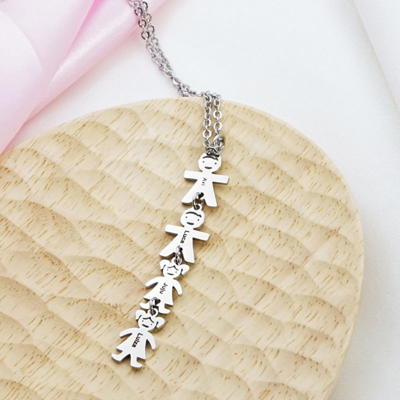 Turn your bond of love into this personalized jewelry. It's a necklace with figure charms printed with your names.