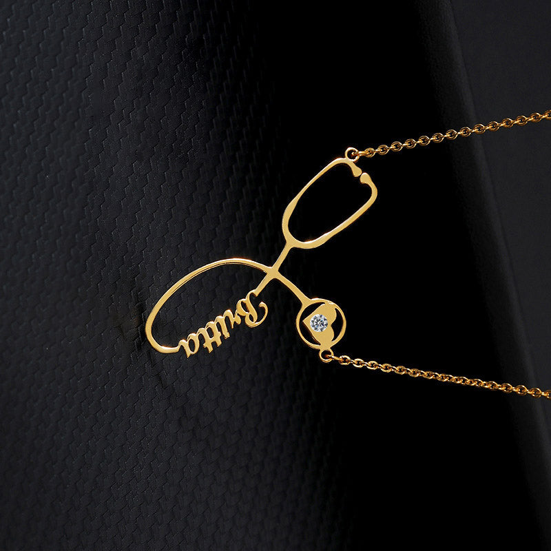 Stethoscope Name Necklace Stainless Steel Name Necklace