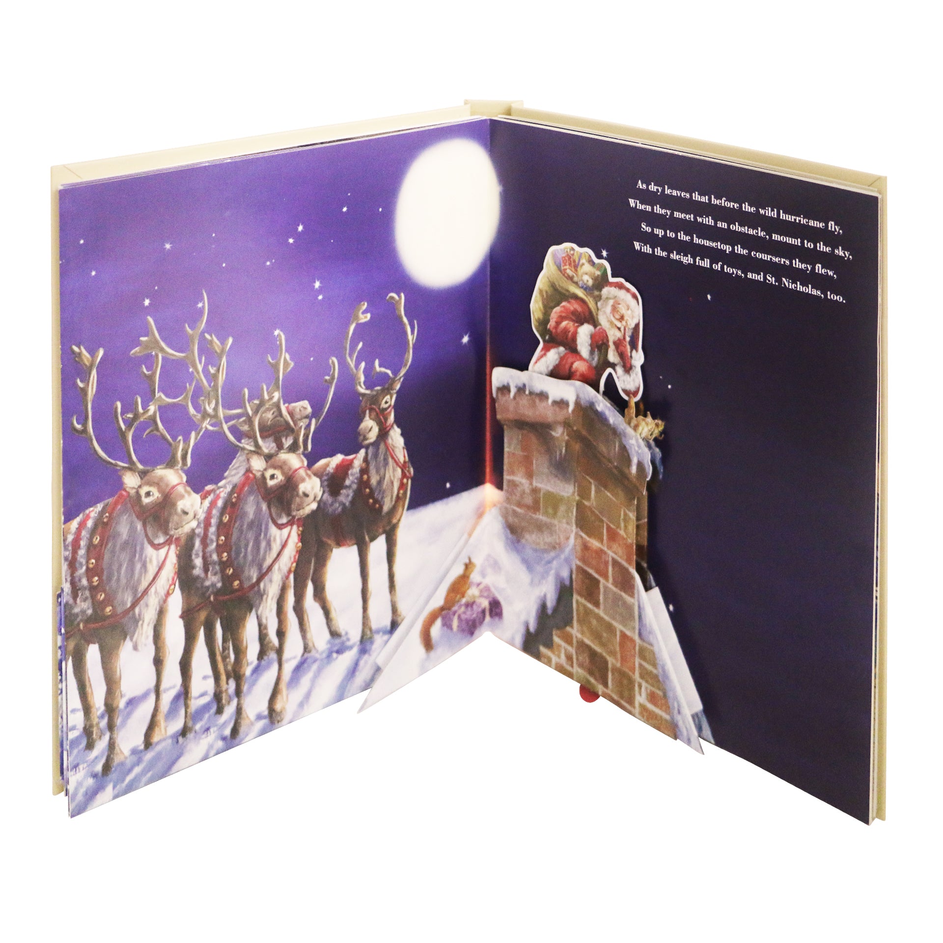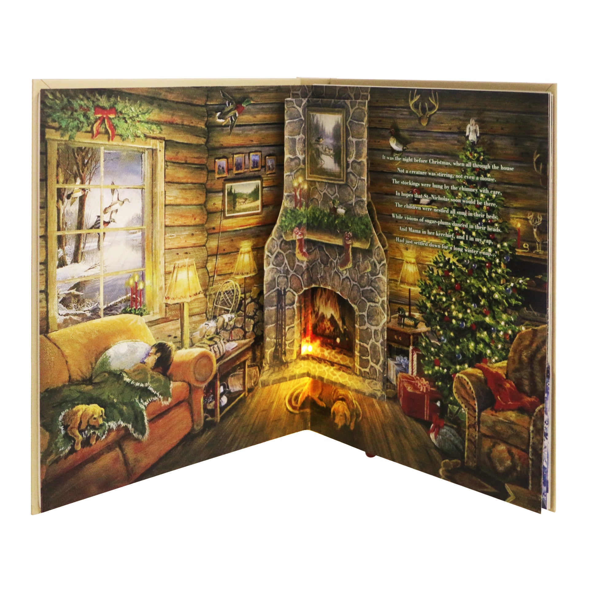"The Night Before Christmas" hardcover children's book features a childlike option to let you bring the story to life, with pop-up scenes and lighted backgrounds. This delightfully interactive version of the most beloved Christmas poem of all time will captivate both the young and the young-at-heart. Turn the pages to enjoy classic illustrations brought to life with pop-up scenes, and light features. Enjoy the sweet time gathering in front of the fireplace and the Christmas Tree, and wandering in the fancy old story.