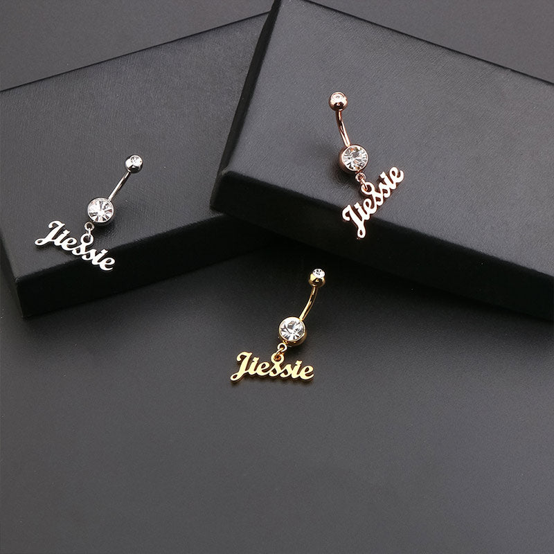 Customized Alphabet Name Belly Button Studs Personalized With Diamond Small Belly Button Jewelry